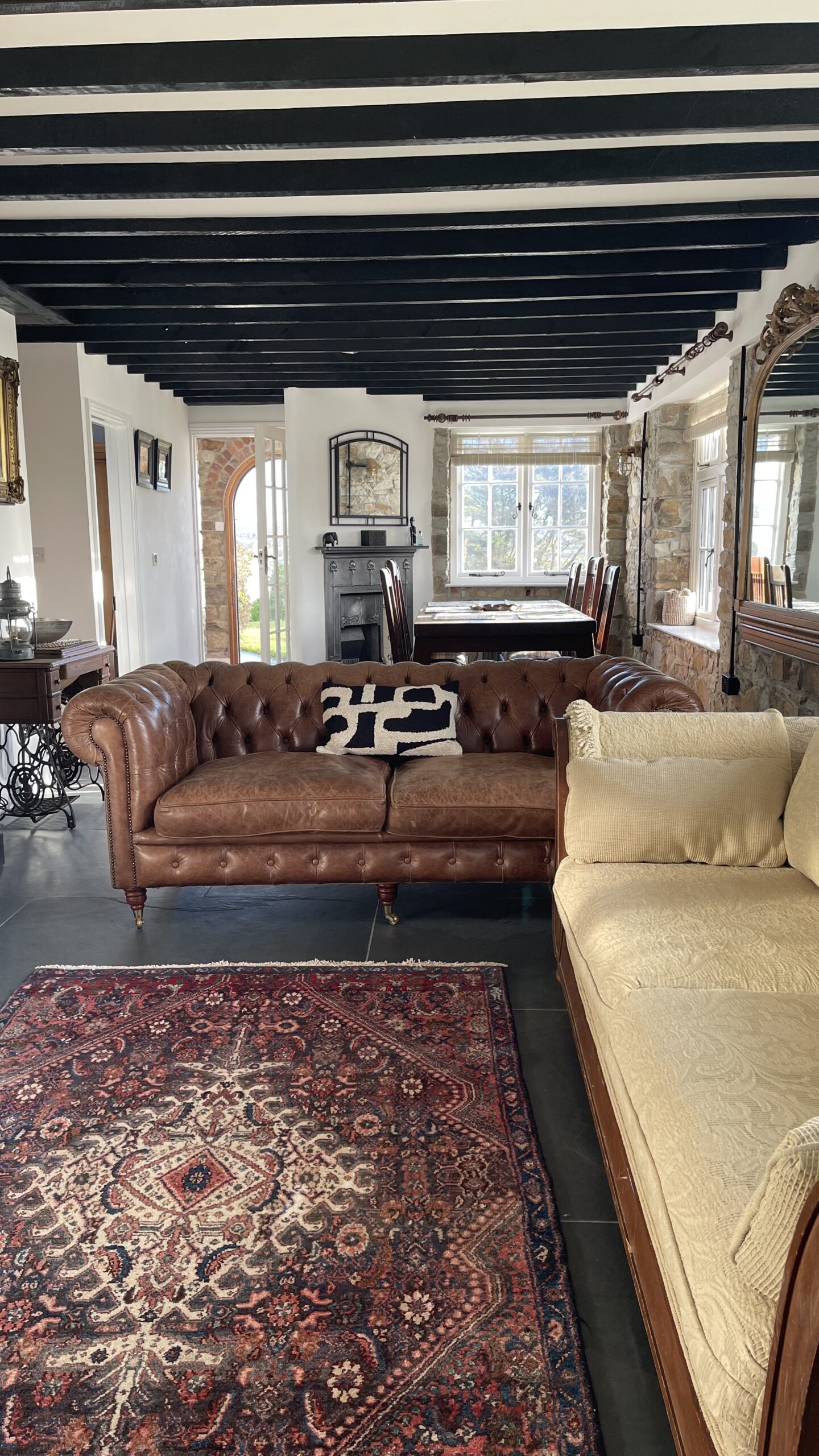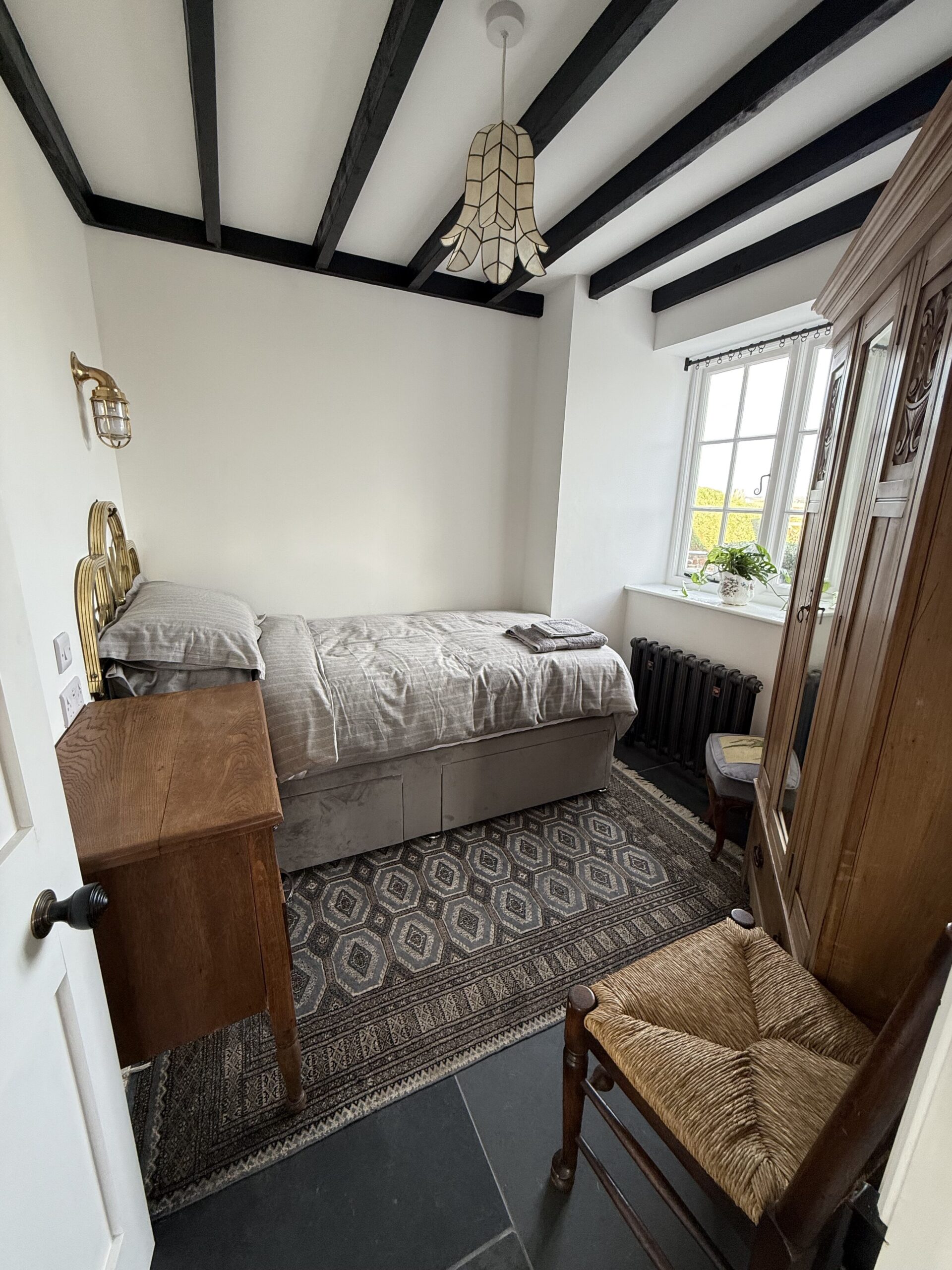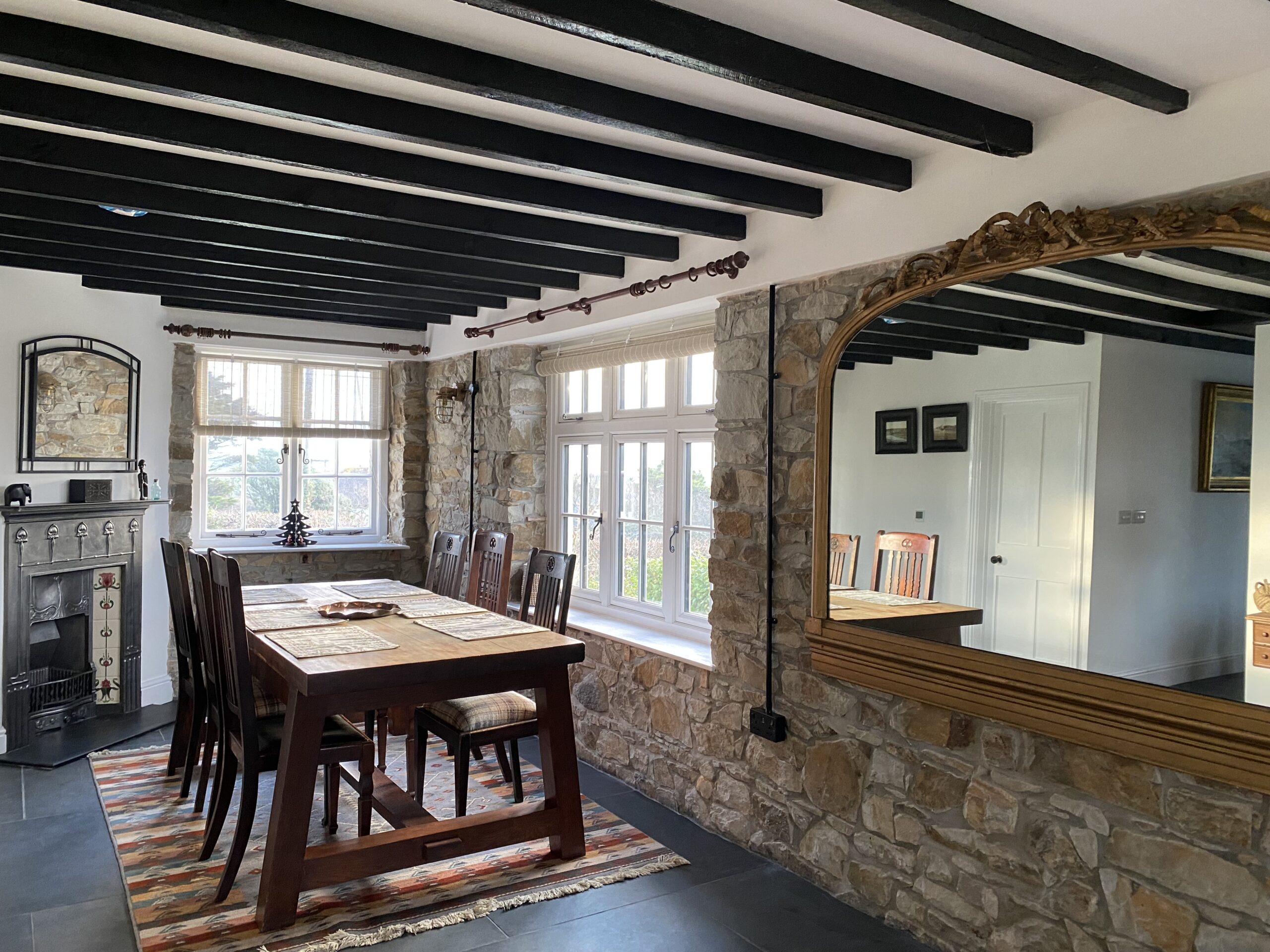 Aldine Cottage sleeps up to five guests in three bedrooms and offers two bathrooms. The cottage is exceptionally well equipped and ideal for year-round stays. Log burners and underfloor heating make it warm and cosy in winter, while the southerly aspect ensures the house is bright and airy during the summer months. There is ample private parking, a large garden and adjoining field, and excellent outdoor space including a barbecue and outdoor kitchen.