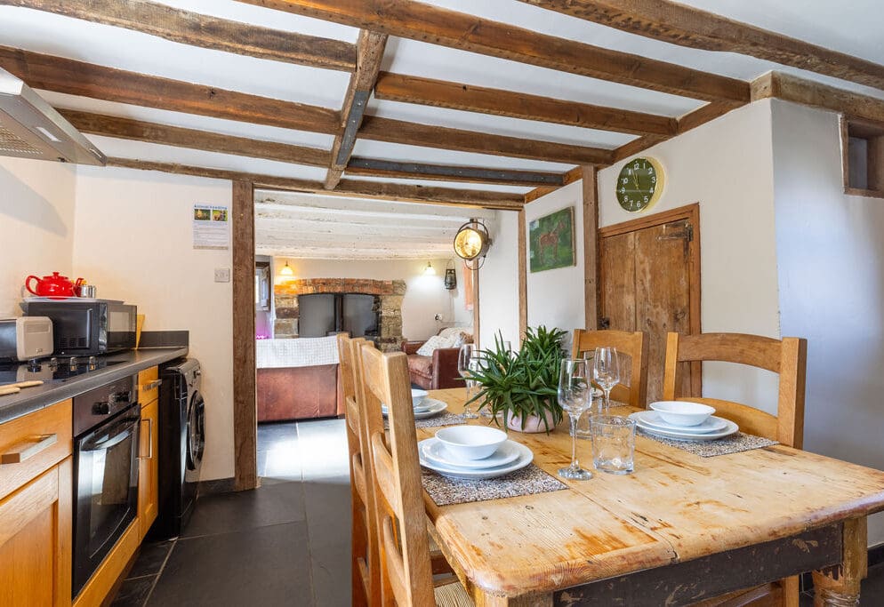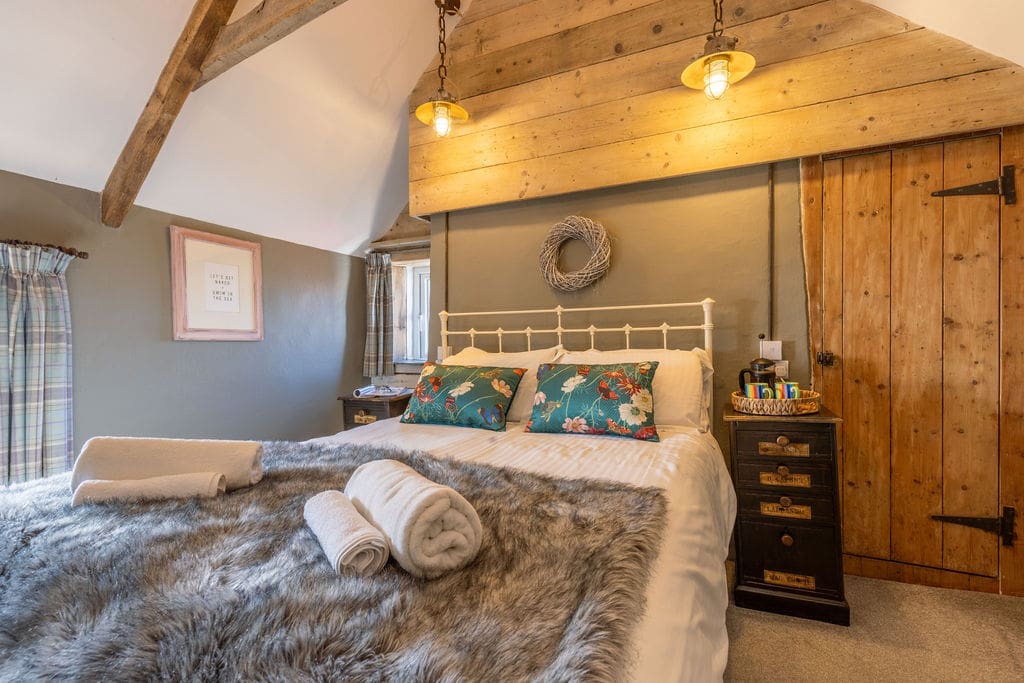 The cottage exudes character with original beams and features, complemented by a contemporary twist. Whether you’re enjoying a romantic supper for two or a lively family meal at the oak dining table in the kitchen, Fuchsia Cottage provides the perfect backdrop. Relax on the comfy leather sofas in the lounge, and during colder months, toast your toes in front of the wood-burner (with all the logs you need supplied).
