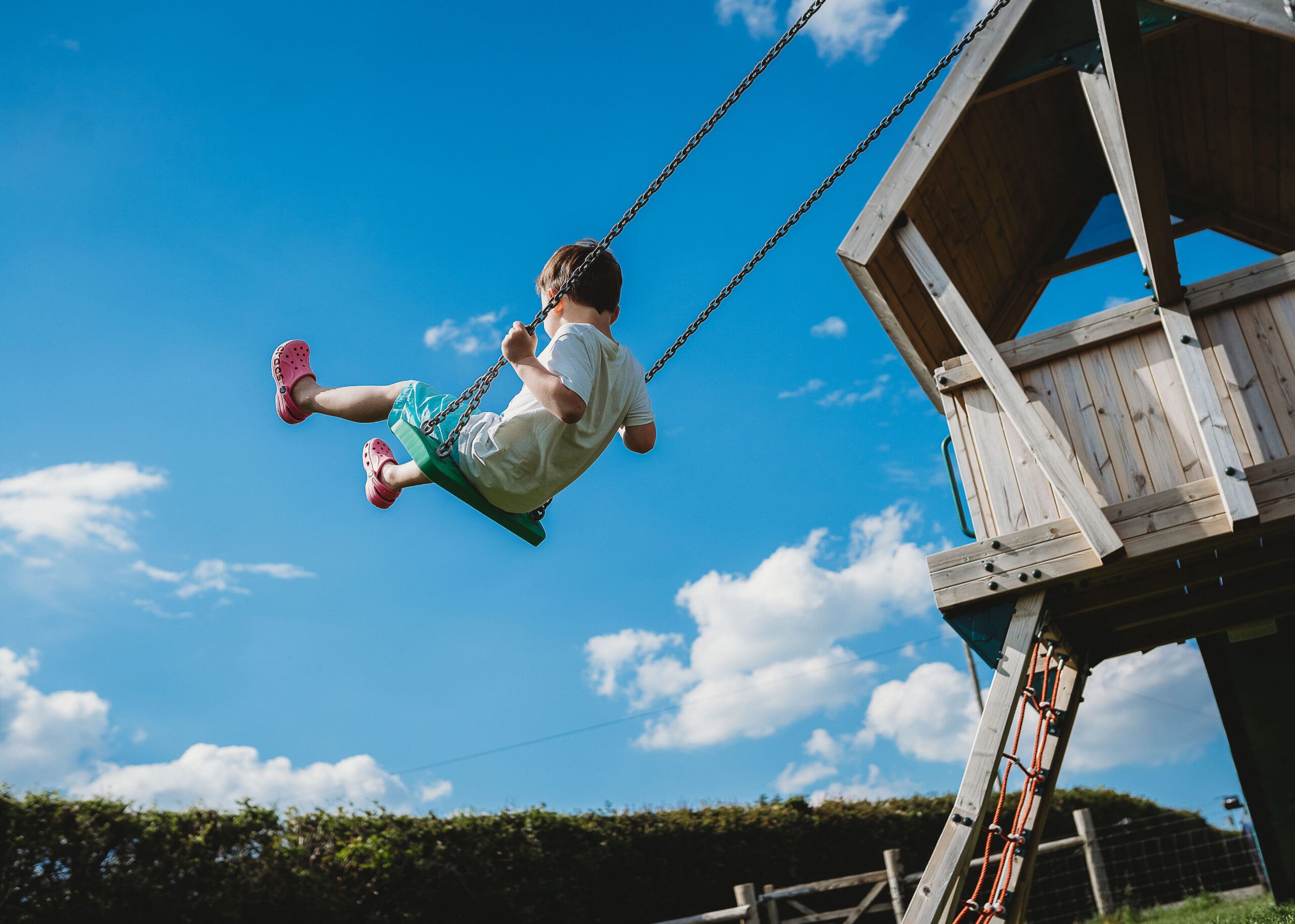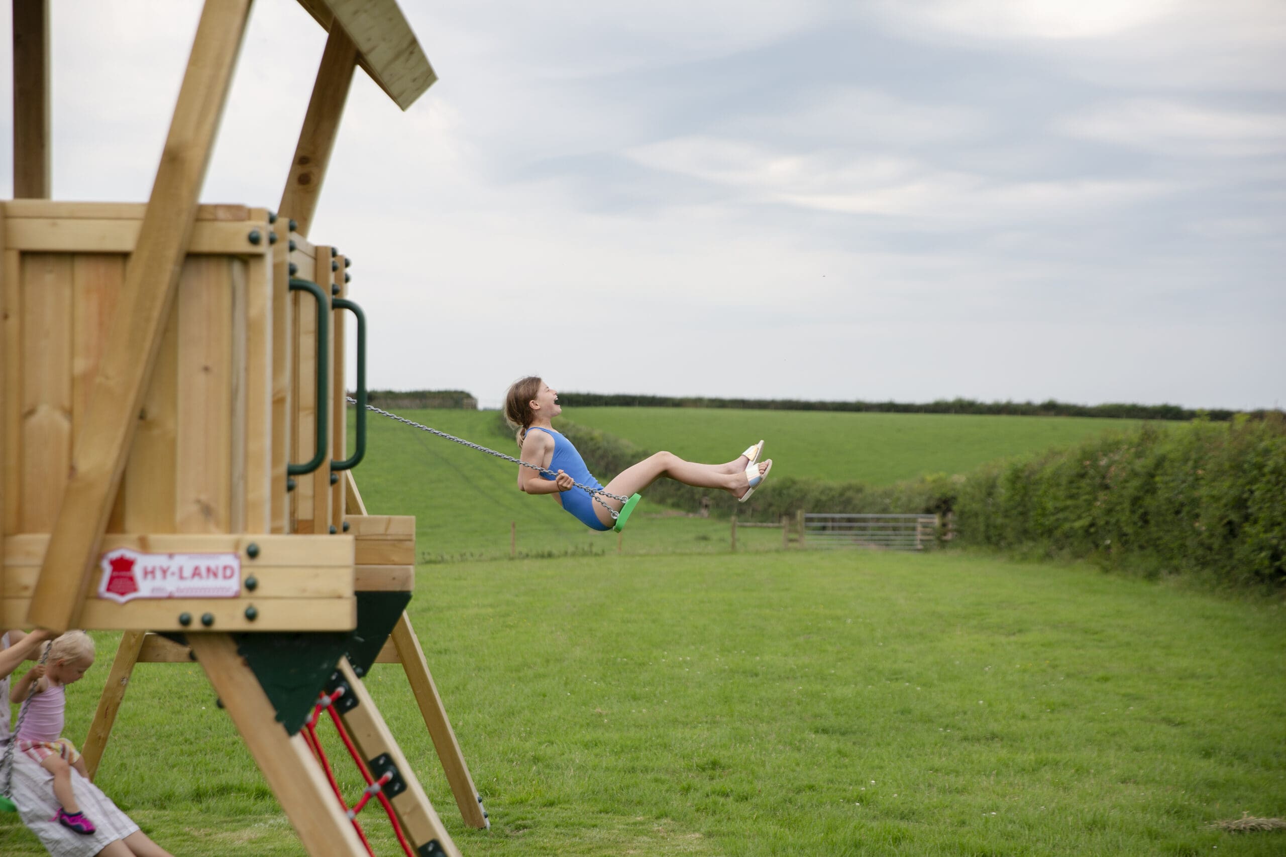 For outdoor play, we provide a playing field with a stunning view, swings, a climbing frame, and a slide. The field also has two football goals, perfect for an impromptu kick-around with the kids.