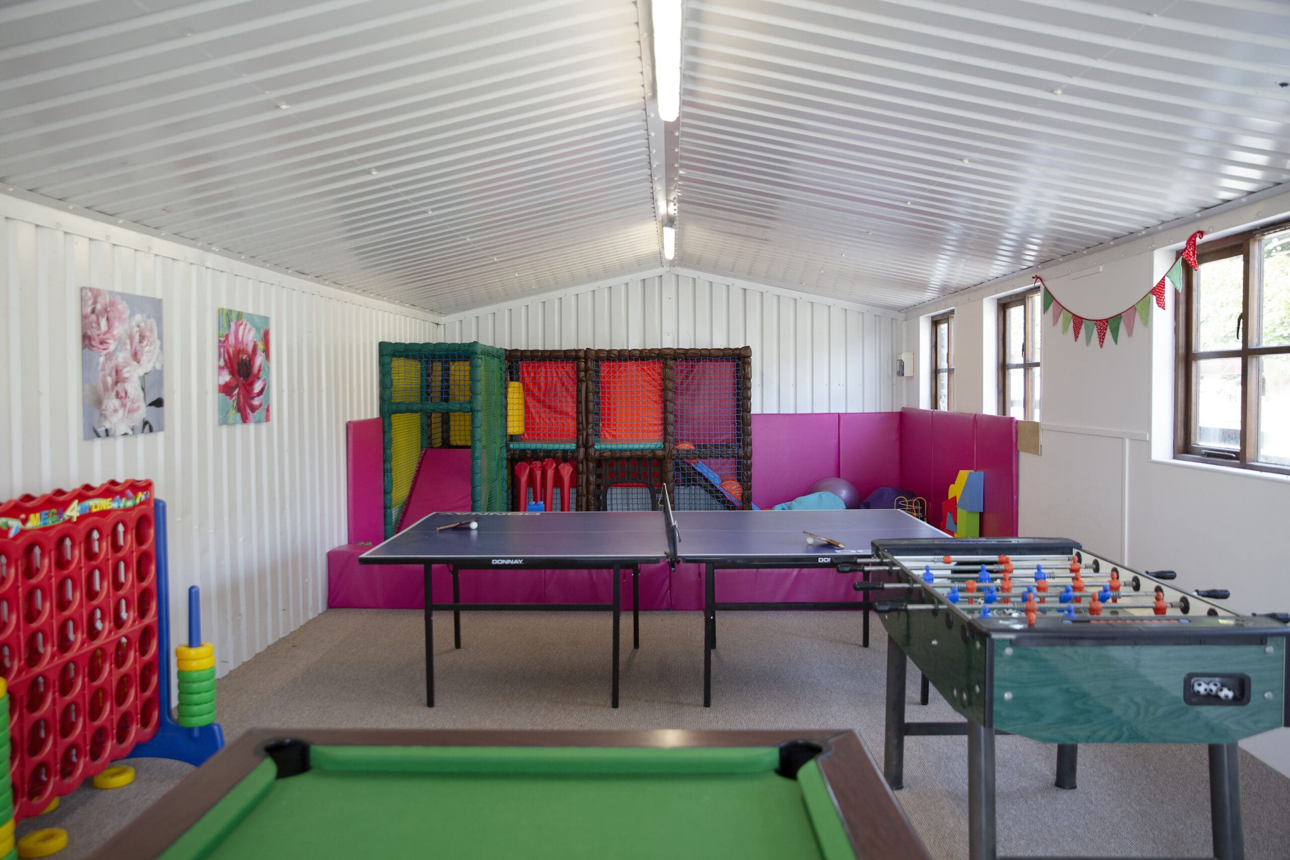 The Games Room is a favourite among our guests, offering a great opportunity for all ages to relax and enjoy a wide range of activities. We have soft play, table tennis, foosball, giant Connect Four, darts, and pool.