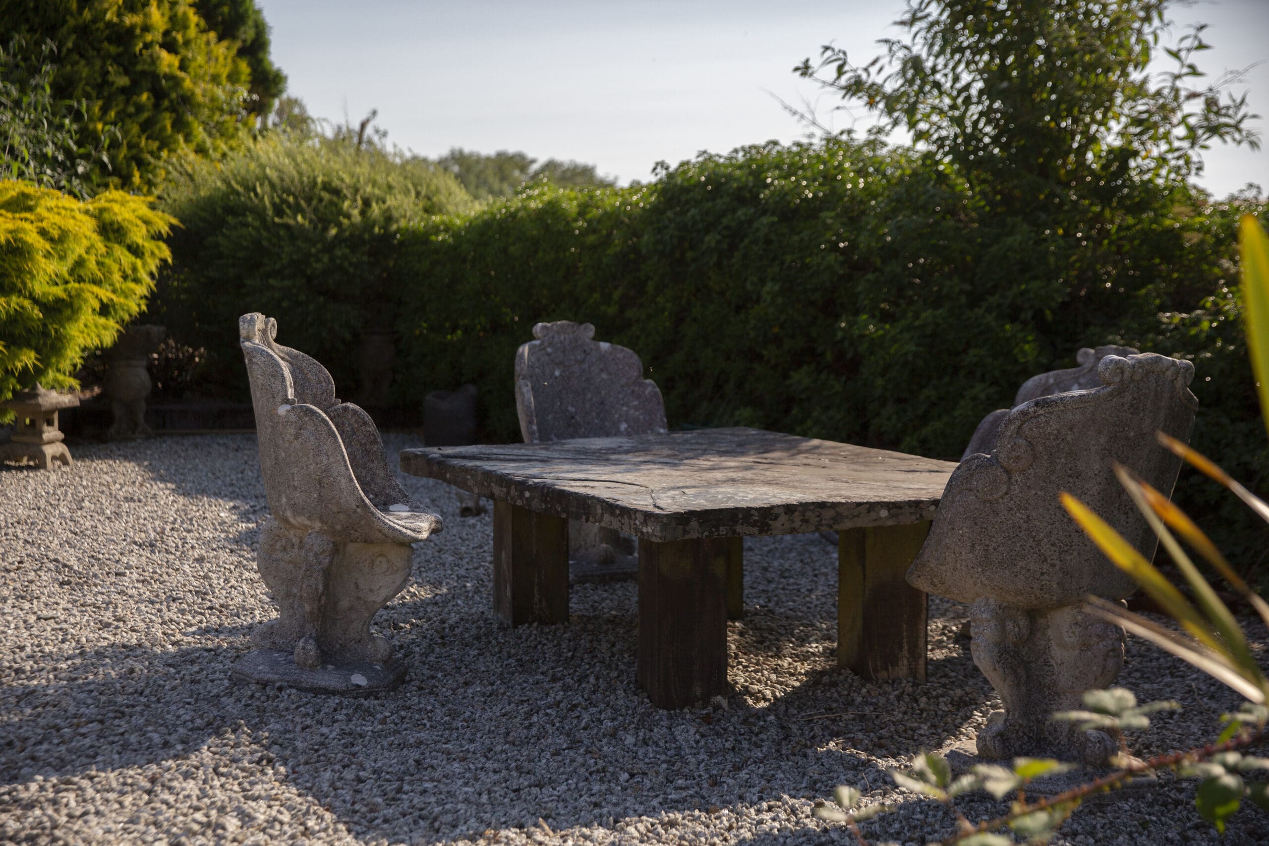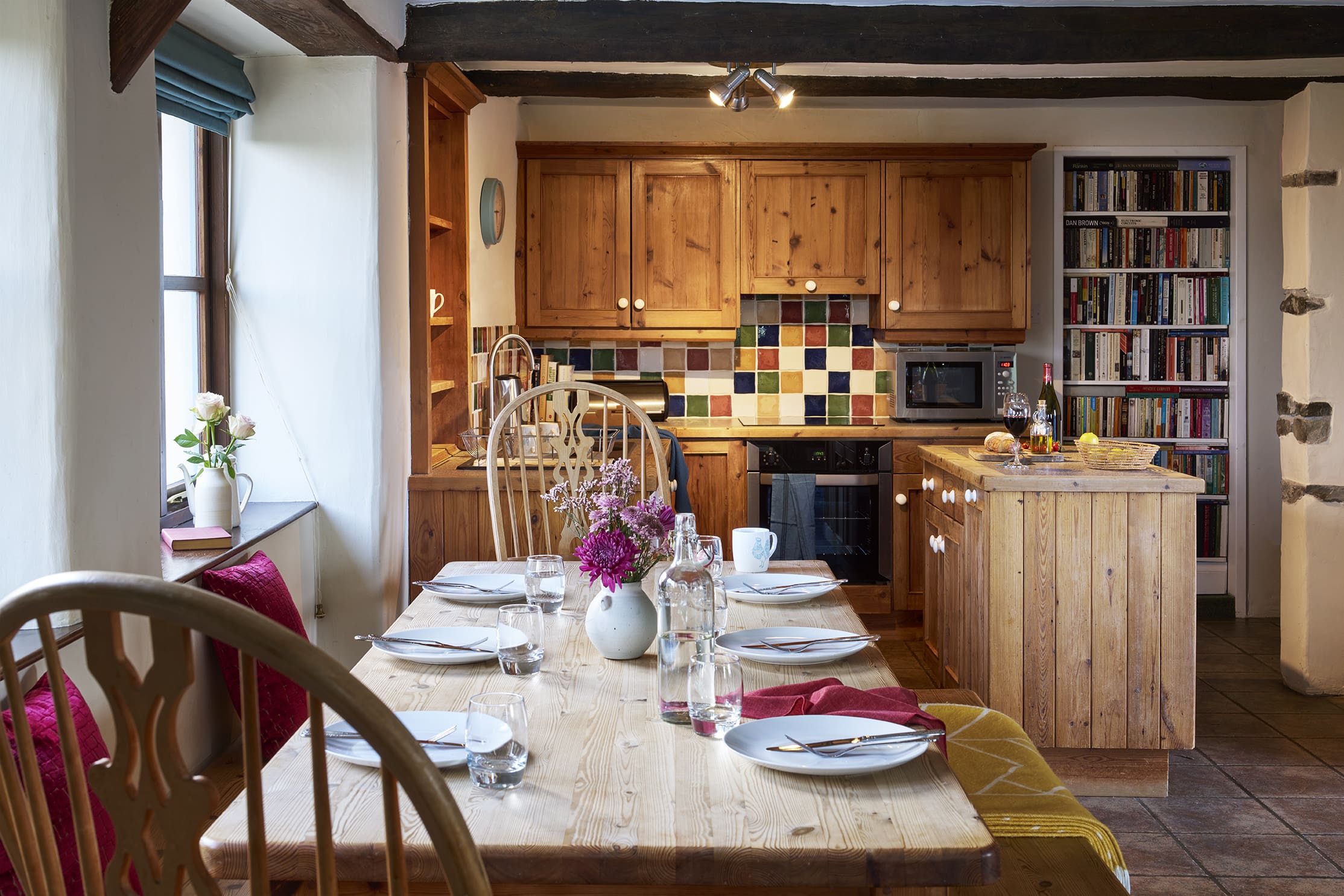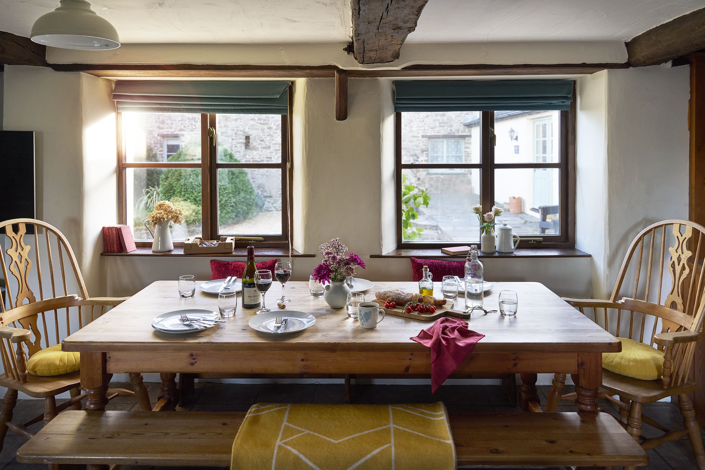 Outside, the cottage offers abundant space, including a charming sunken garden and picnic benches for outdoor dining and relaxation.