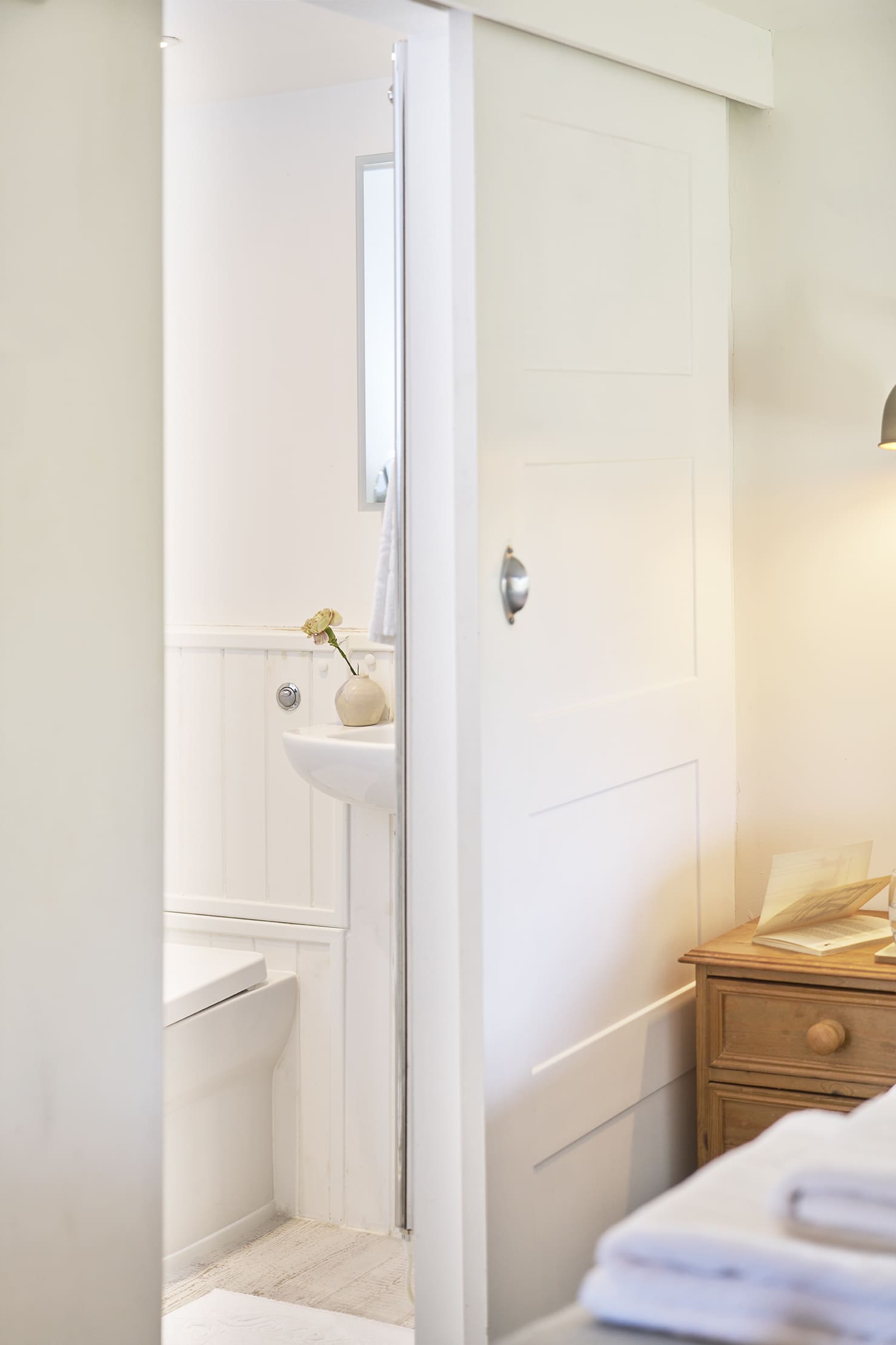 For larger groups, Jasmine Cottage can be extended to sleep 10+ cots by accessing the adjoining Lavender Cottage through a secret bookcase. This combined space features: