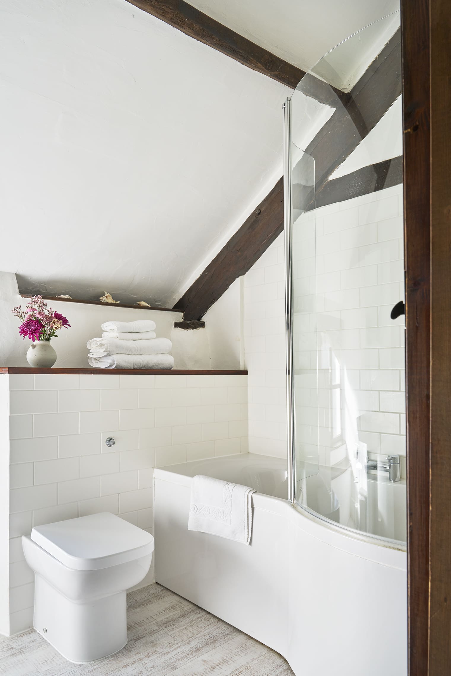 - Family bathroom with bath and shower.