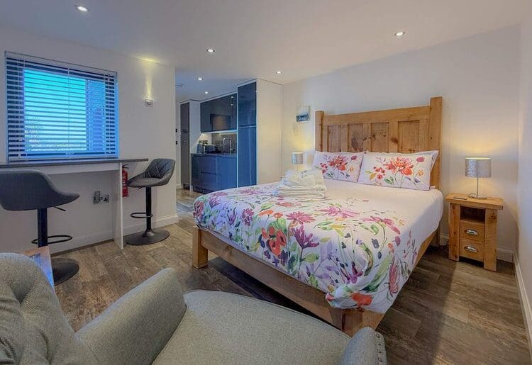 Kovva is a compact, open-plan retreat featuring a king-size bed with a memory foam mattress, a small kitchenette, and a modern shower room. Underfloor heating ensures a cosy stay throughout the year.
