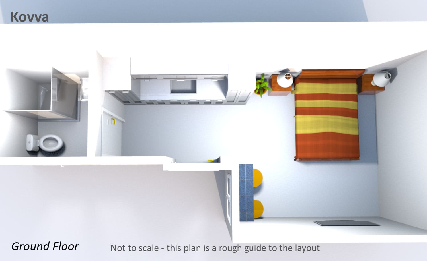 Please note: Kovva does not have a cooker, hob, or dishwasher.