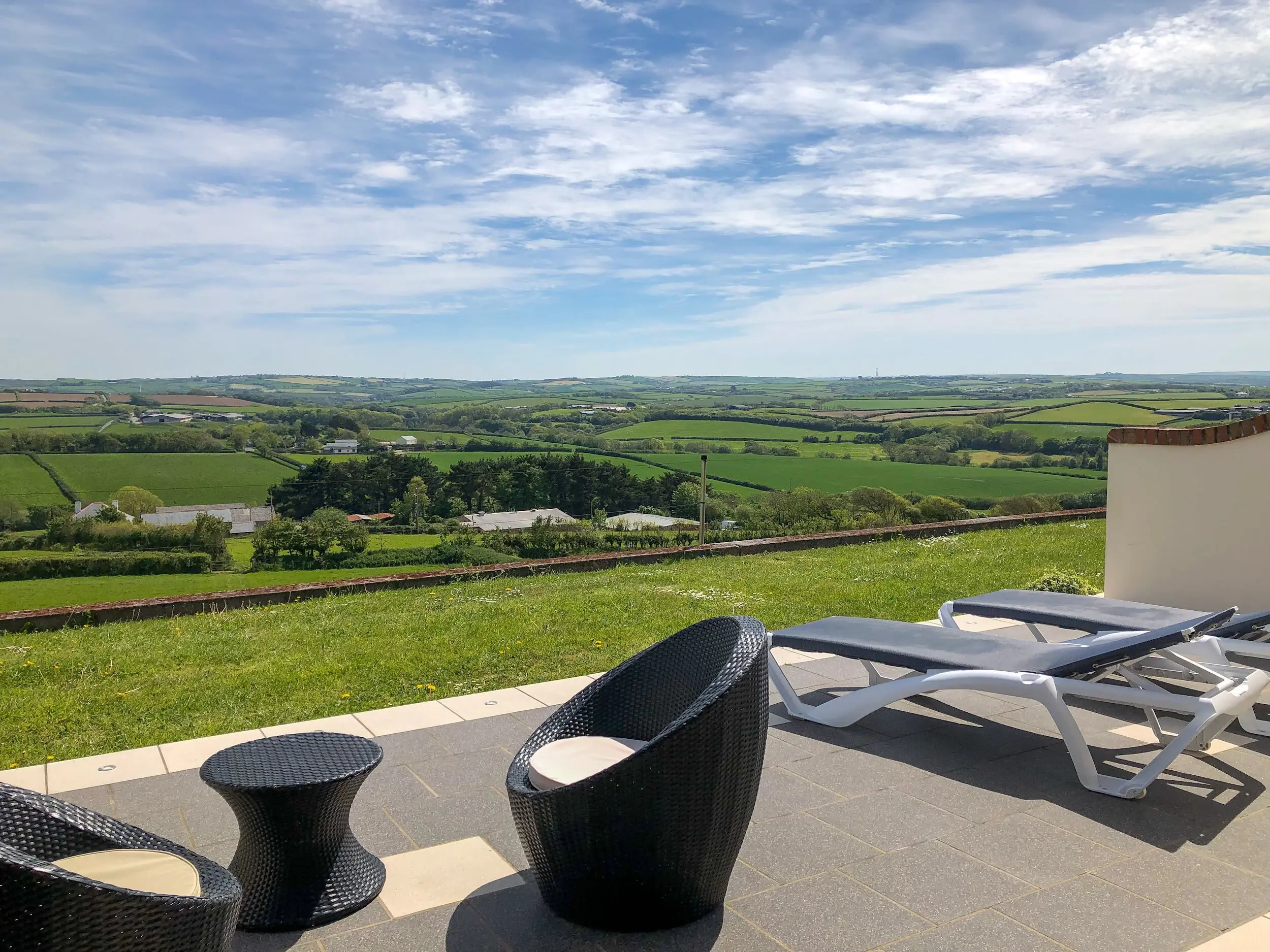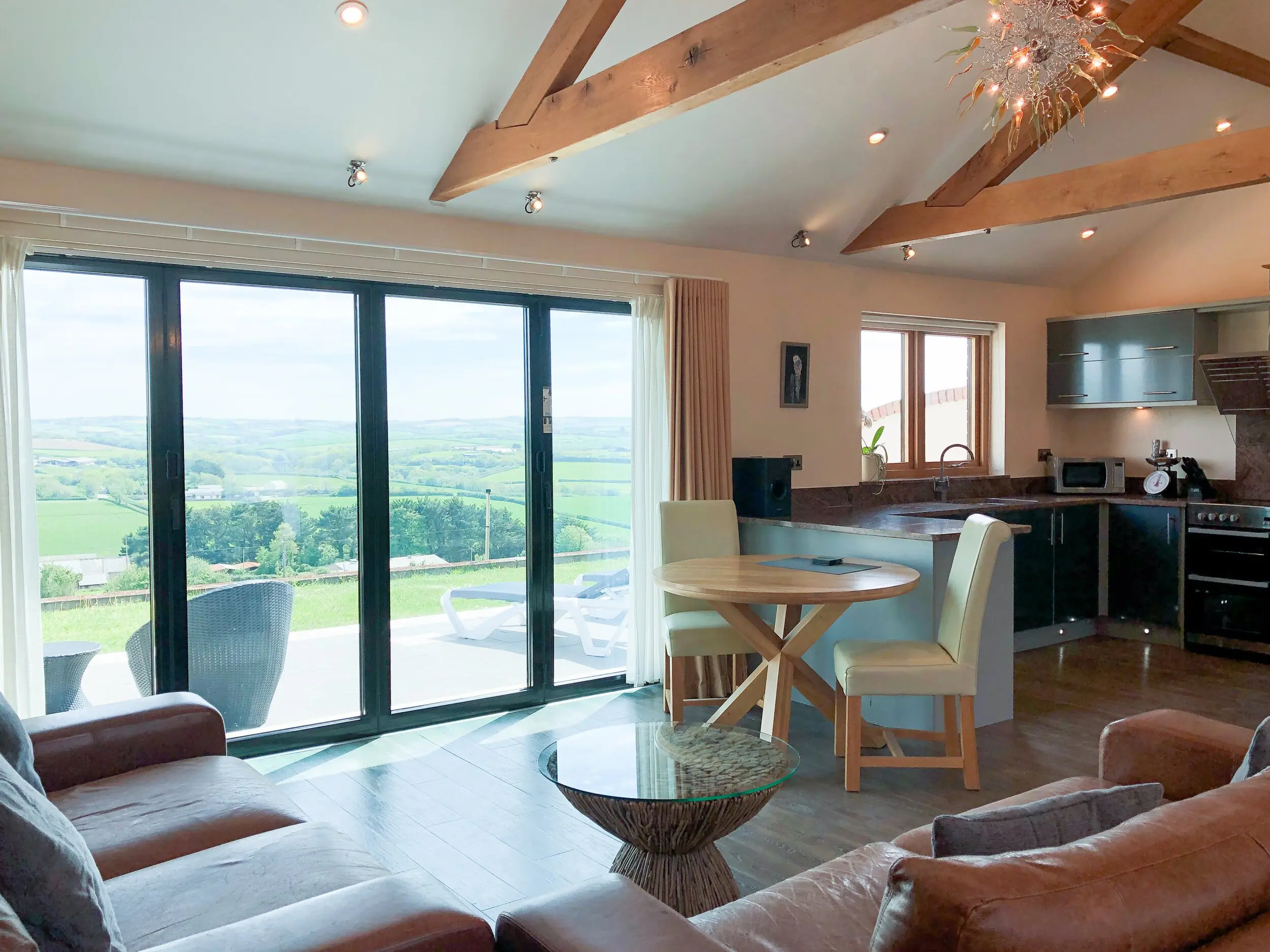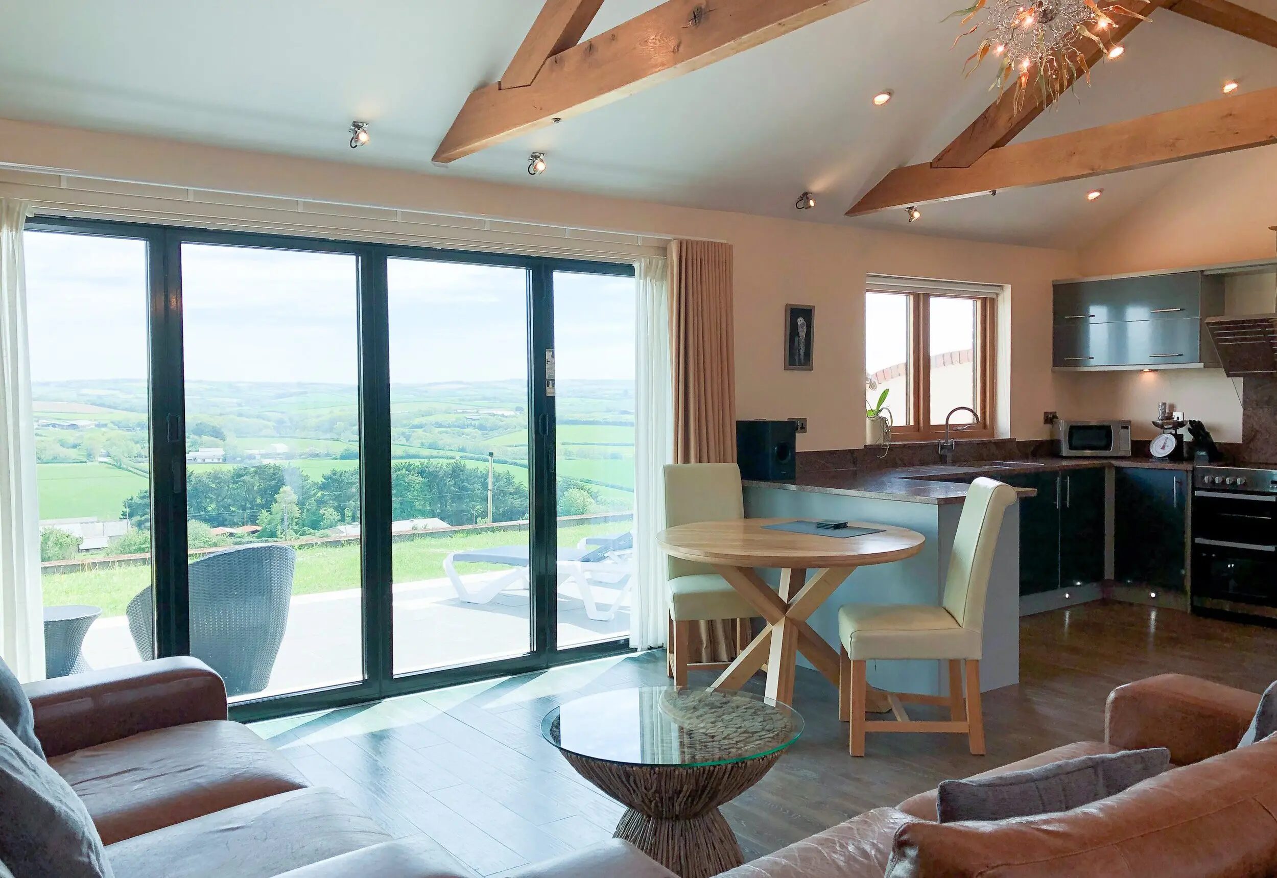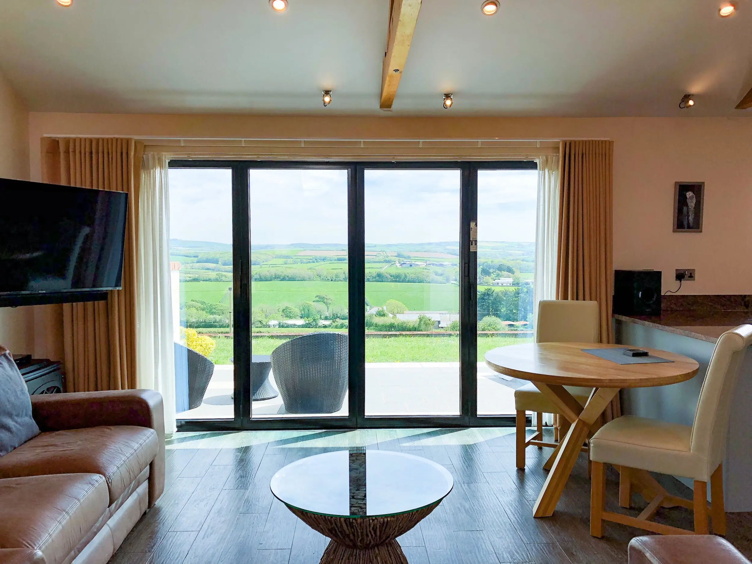 Bi-folding doors open onto the patio, where you can take in sweeping countryside and sea views. Parking is conveniently located a short distance from the apartment.