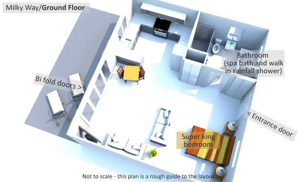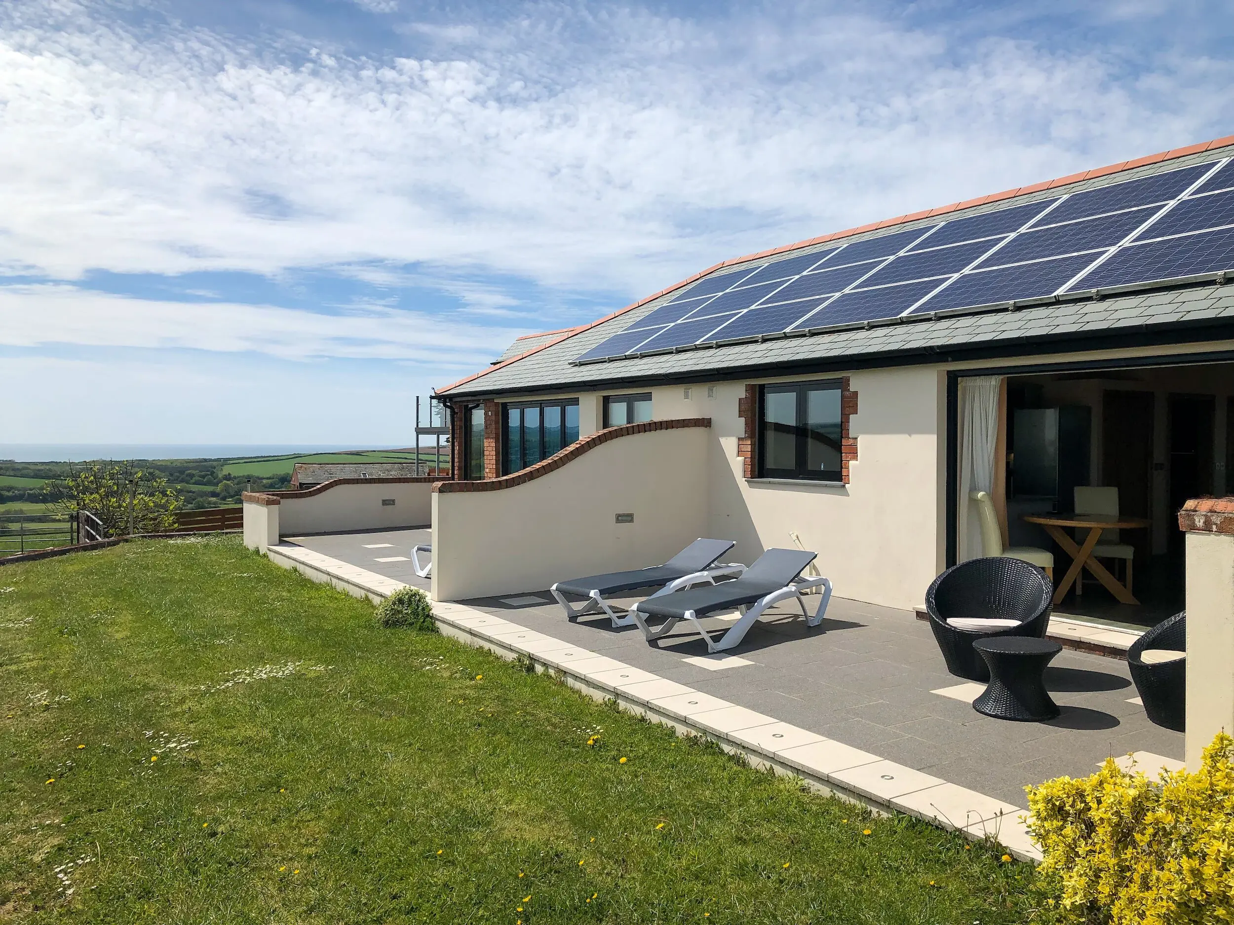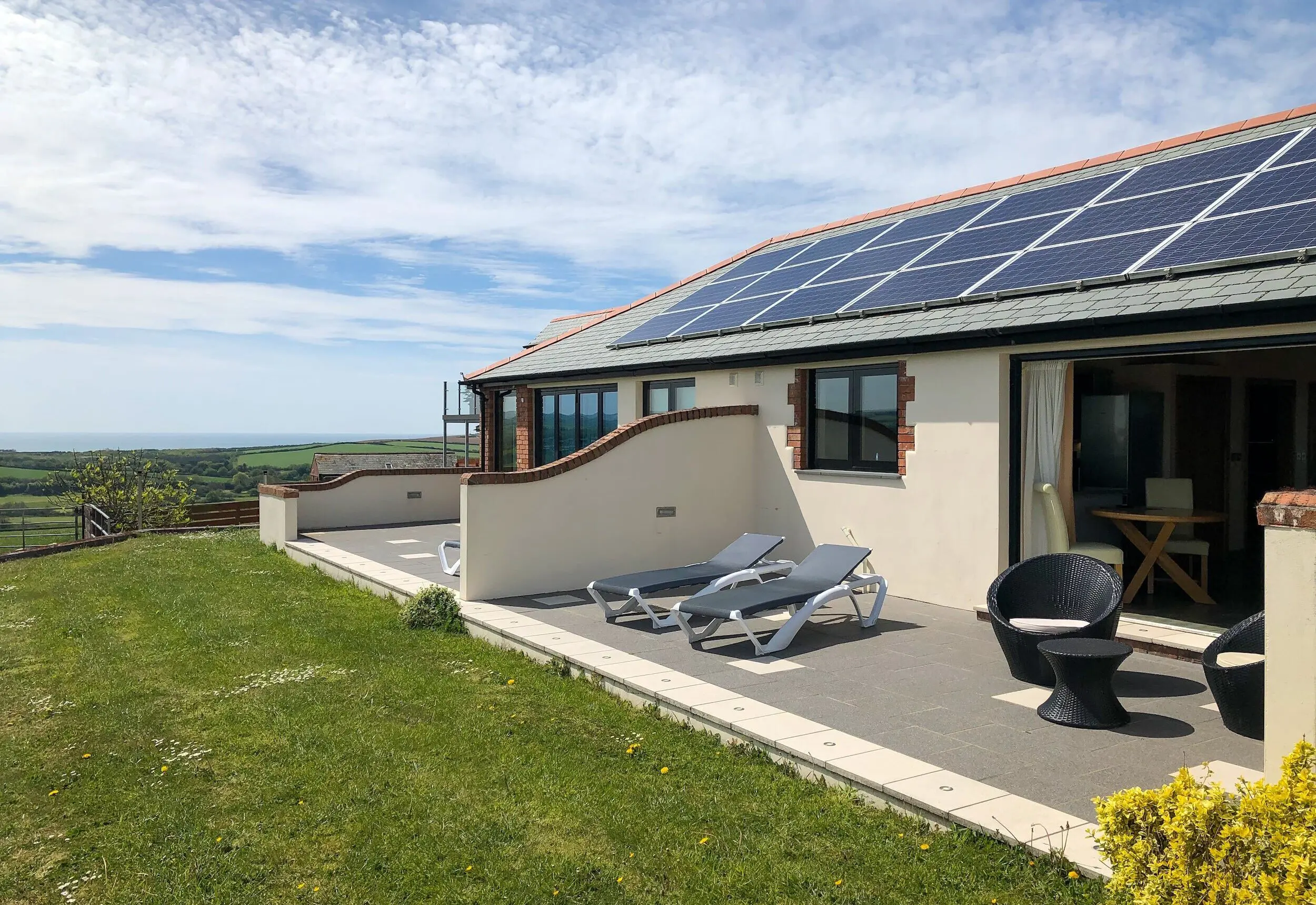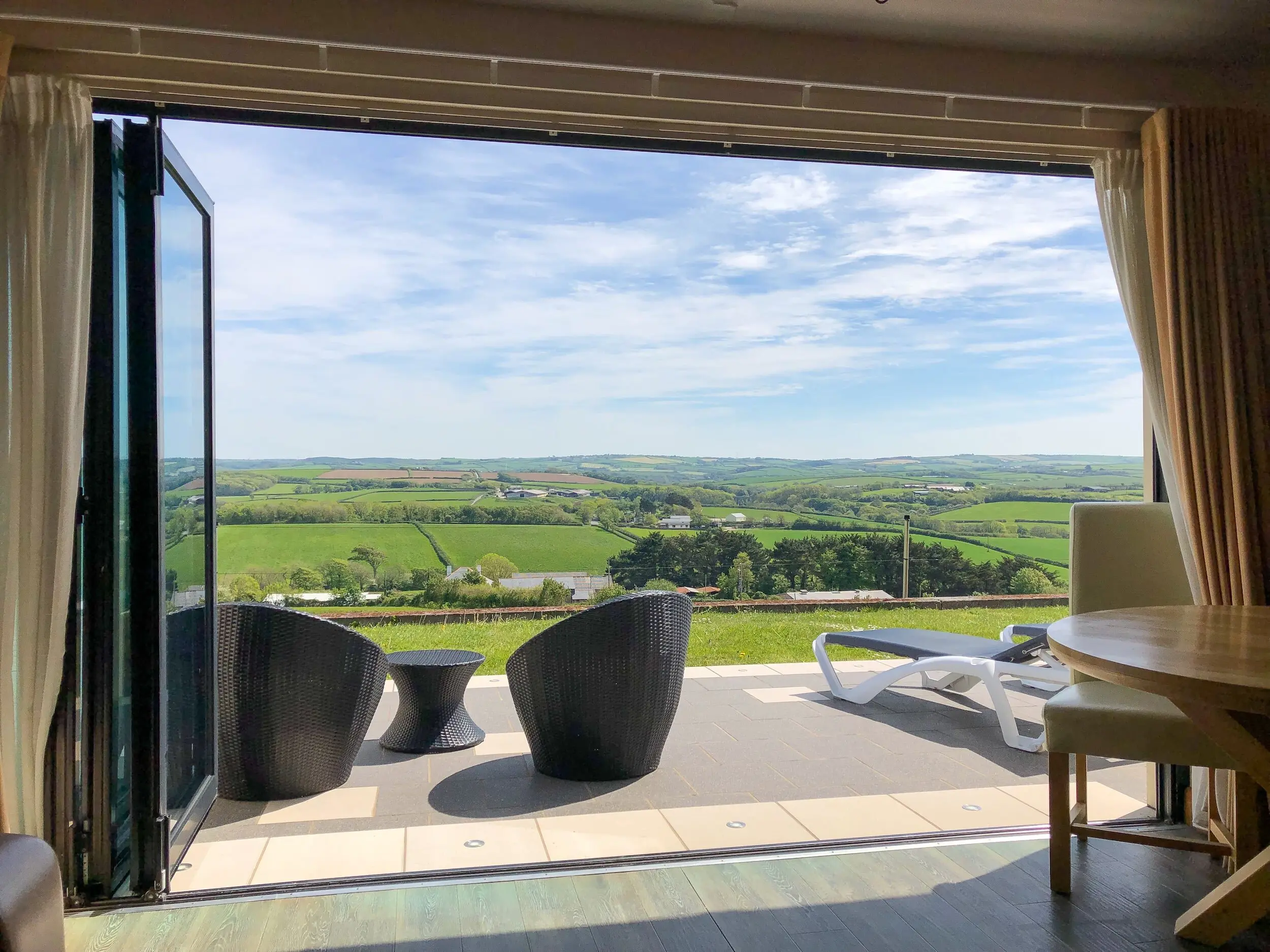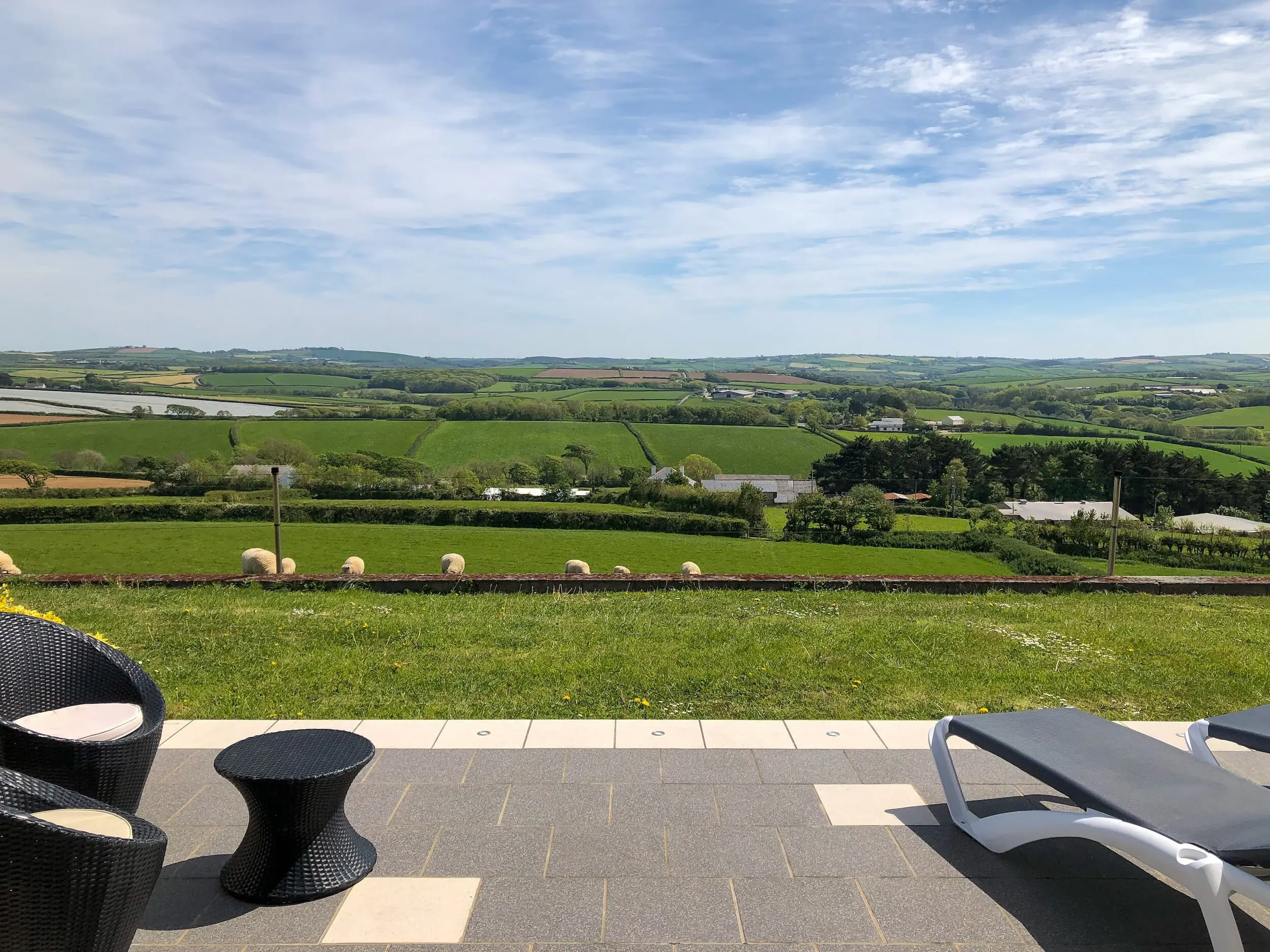 Bi-folding doors open onto the patio, where you can take in sweeping countryside and sea views. Parking is conveniently located a short distance from the apartment.