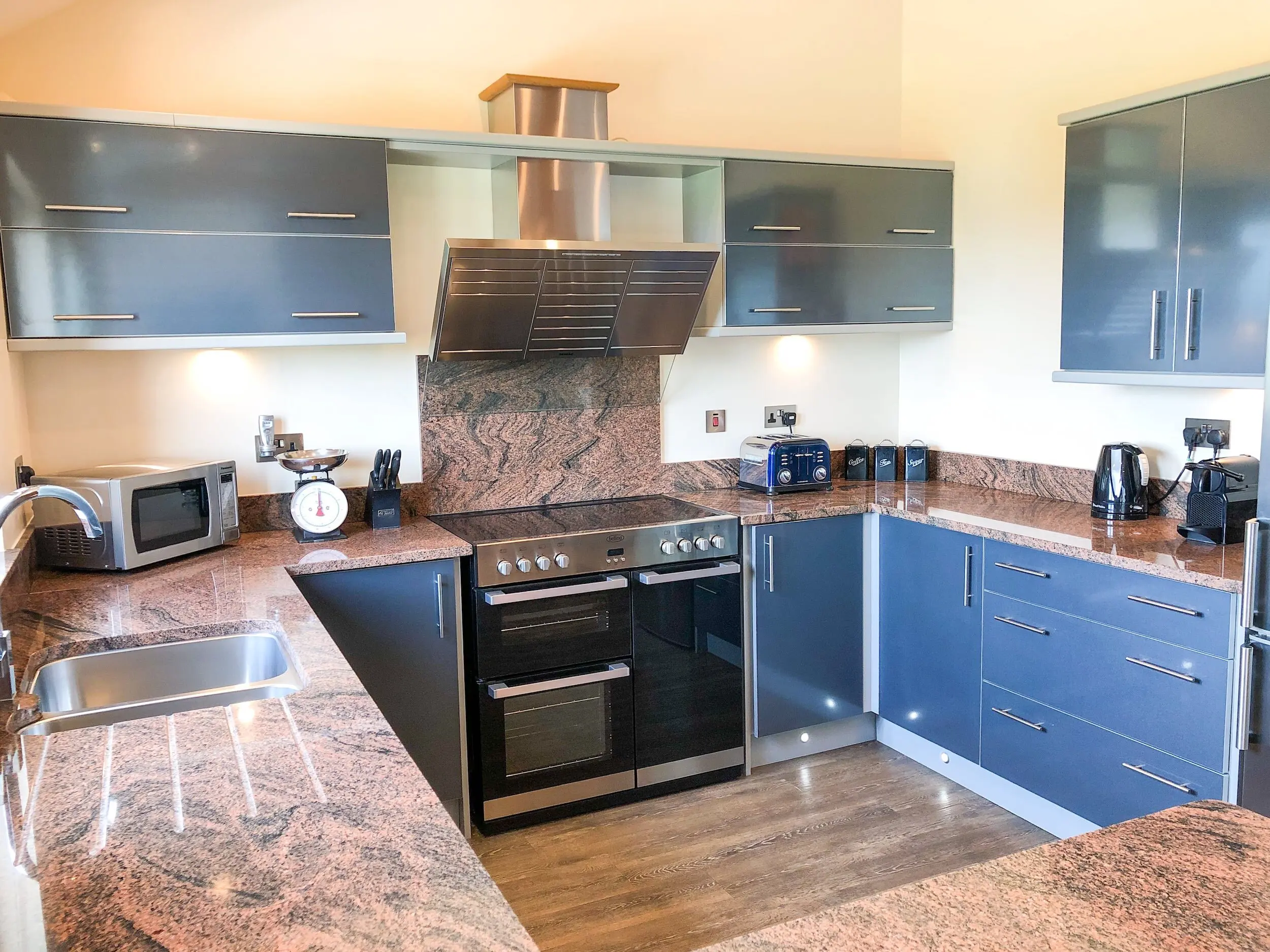 Relax in style while admiring far-reaching countryside views. Traditional touches, including chunky oak beams and solid oak doors, blend seamlessly with contemporary design. Unique details — from the eye-catching chilli light to local artwork and the bold bathroom design — create a characterful space that makes you want to return.