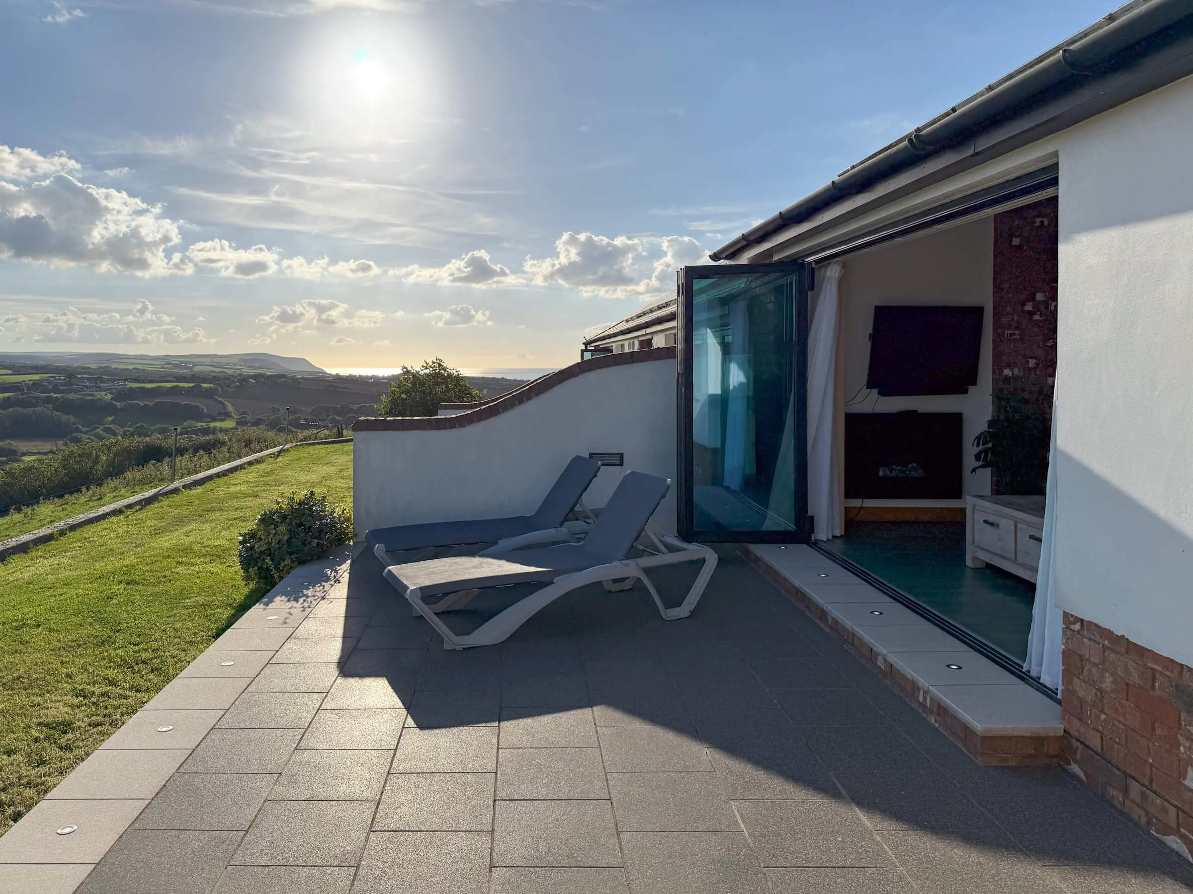 Step through the bi-fold doors onto your private patio and enjoy panoramic countryside and sea views. Parking is conveniently located a short distance from the apartment.
