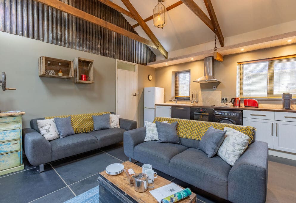 From the moment you step into Parlour through its private porch, a sense of relaxation and tranquility envelops you, setting the stage for a perfect retreat. This single-storey accommodation is ideal for families with young children, offering a contemporary rustic open-plan living area that captures the essence of the natural world waiting just beyond the door—acres of green fields and nearby sandy beaches.