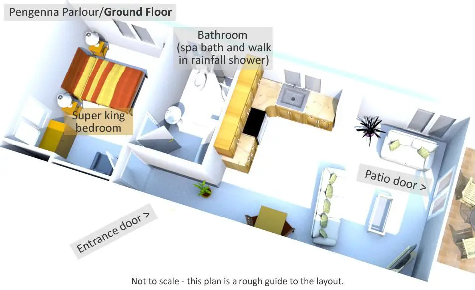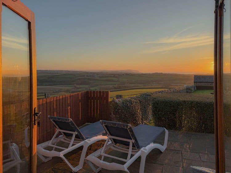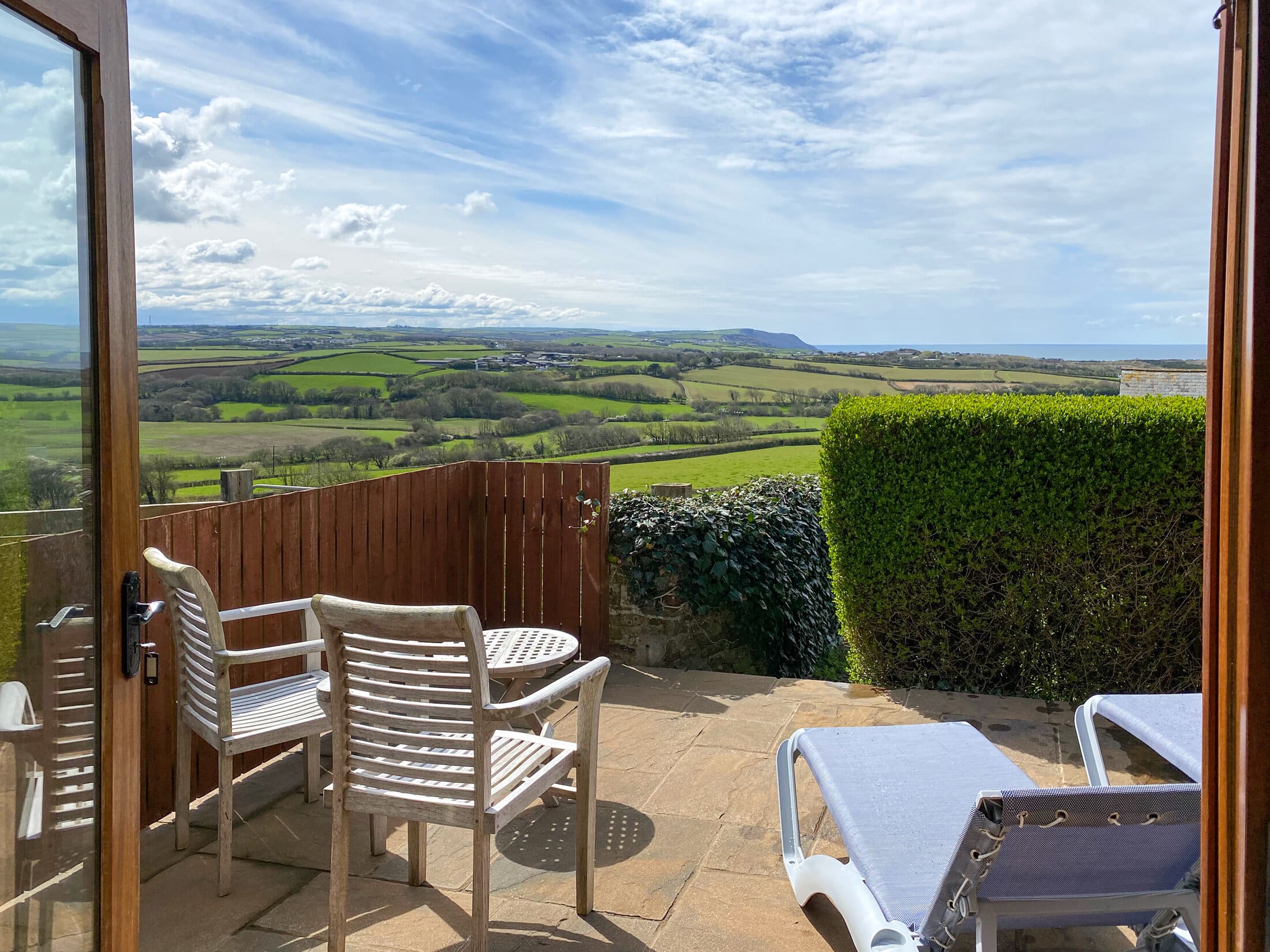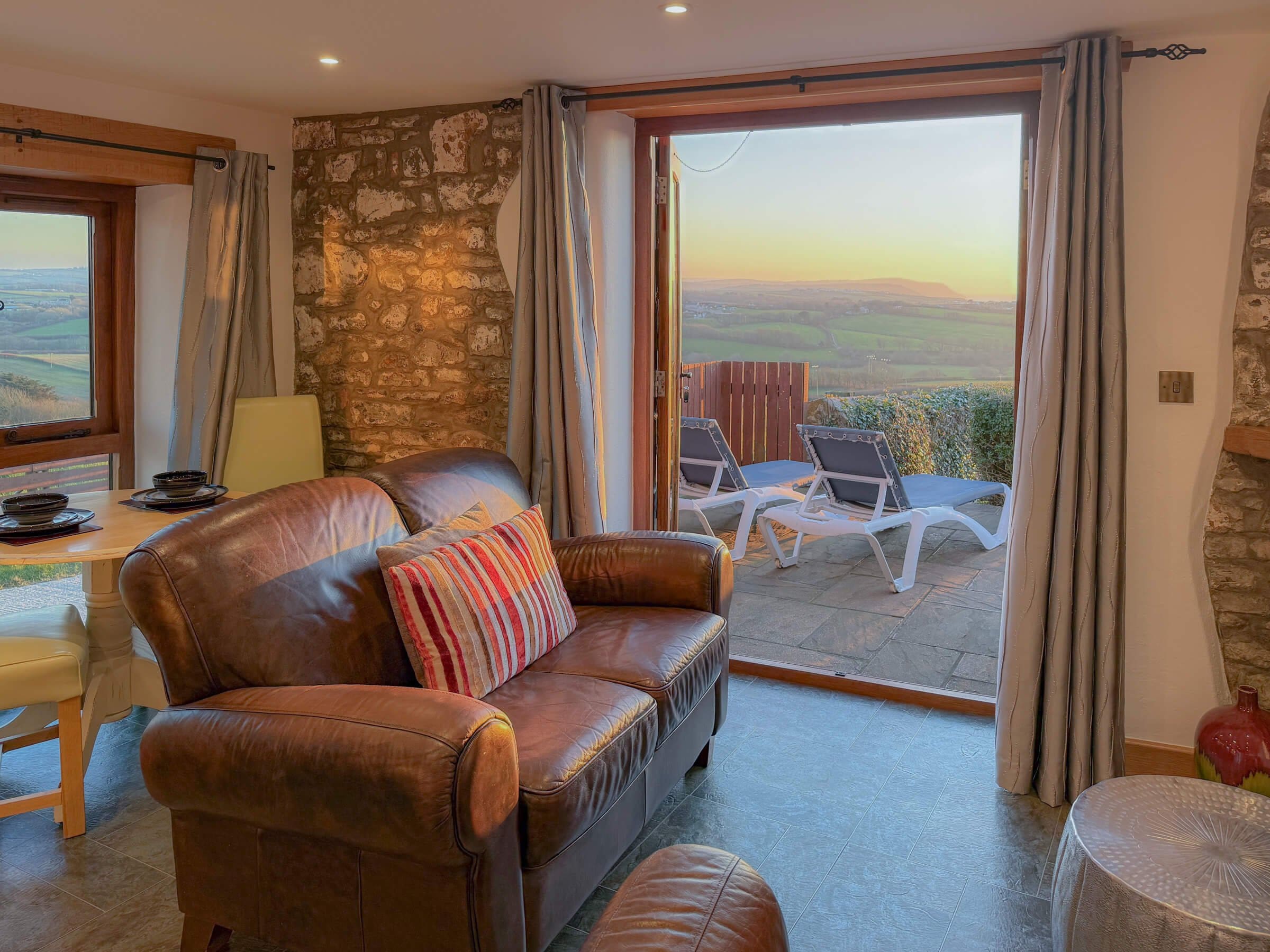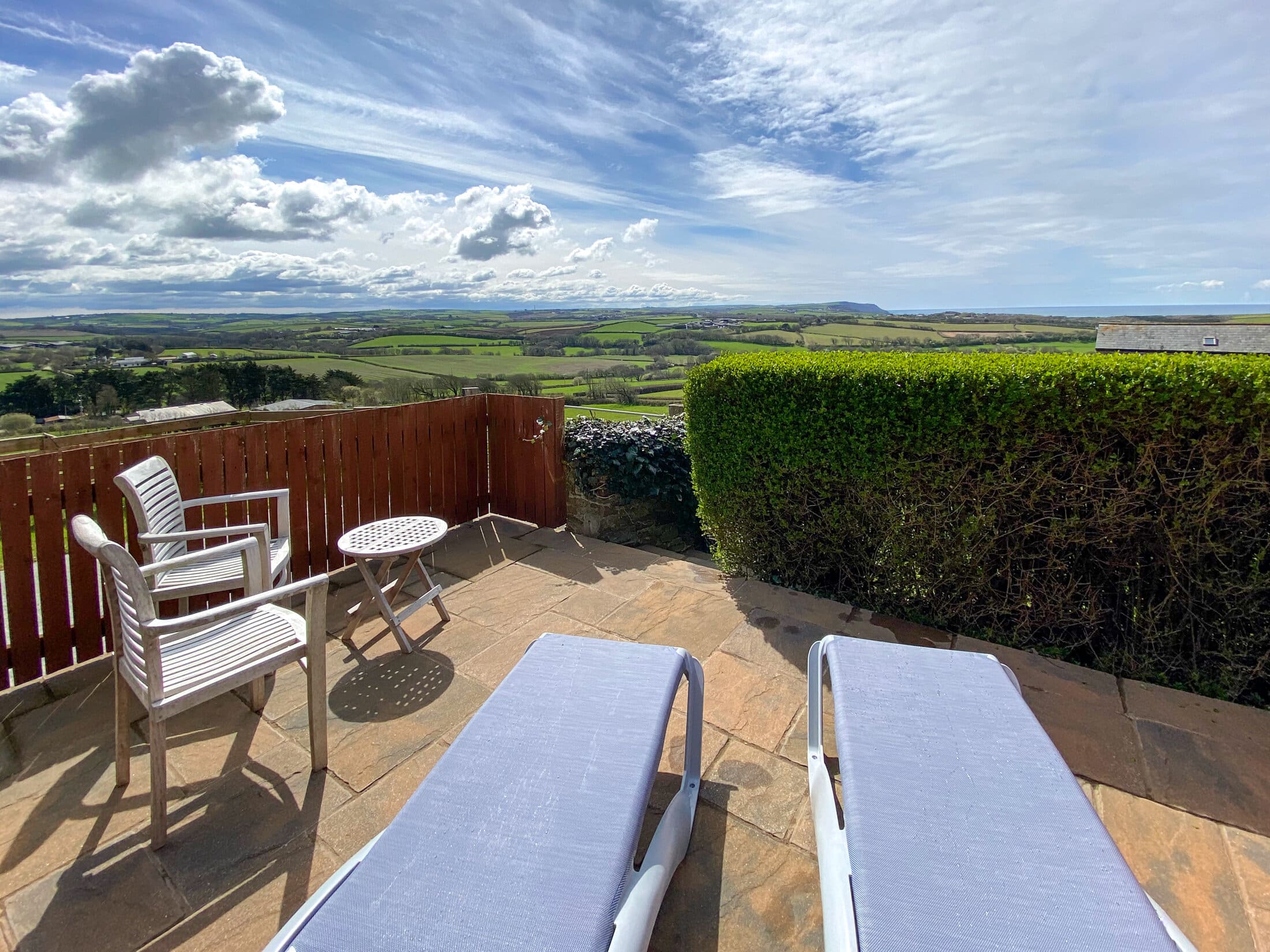 Step onto the private patio to soak in uninterrupted countryside and sea views. Guests also have access to larger shared grounds with a BBQ area.