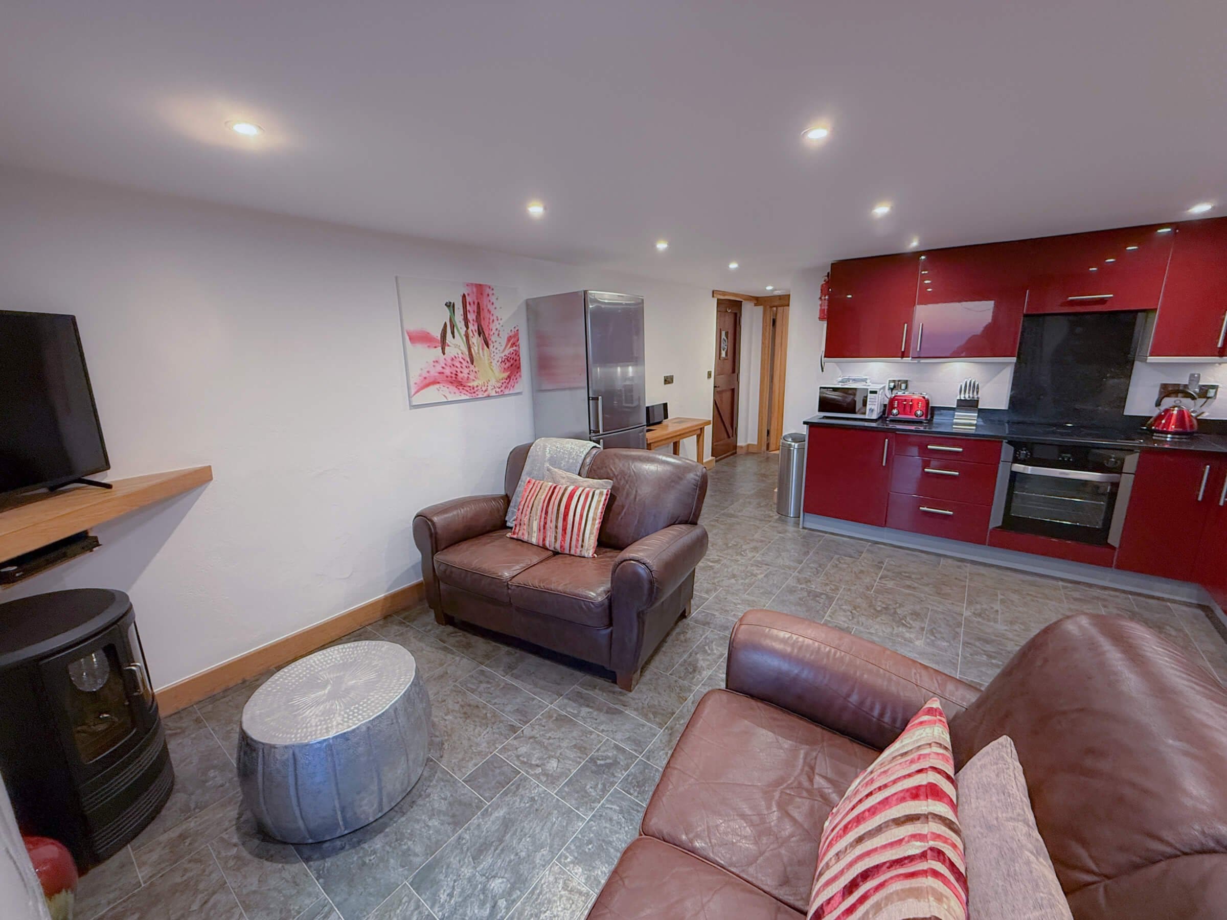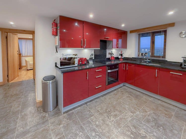The contemporary red gloss kitchen is a real statement piece, perfect for couples who enjoy cooking together. Fully equipped, it includes: