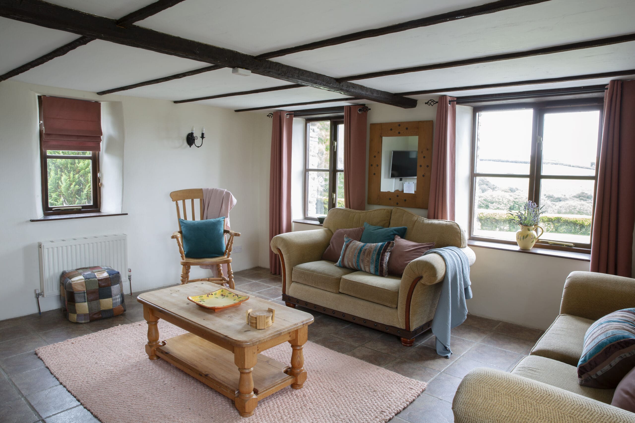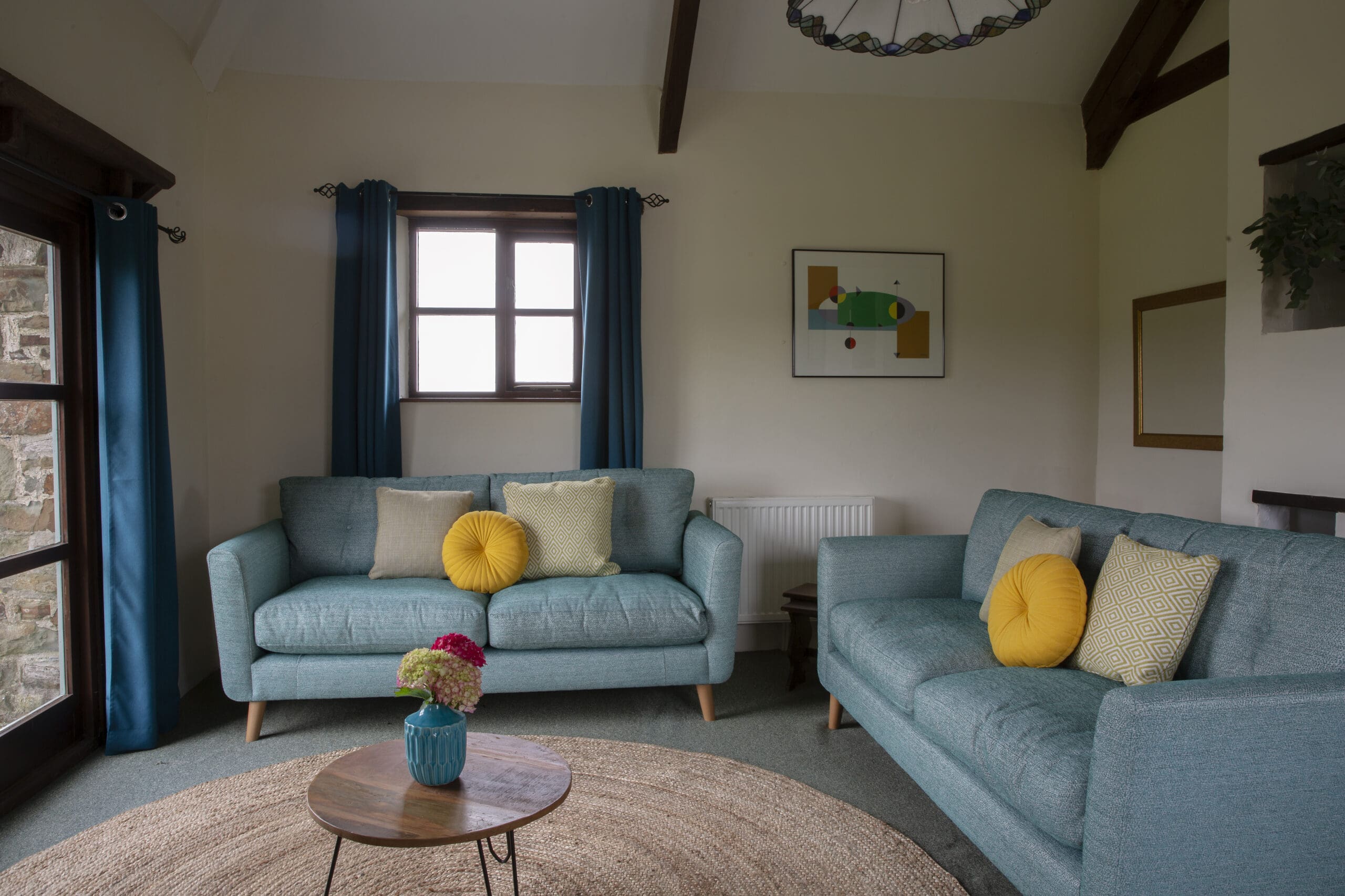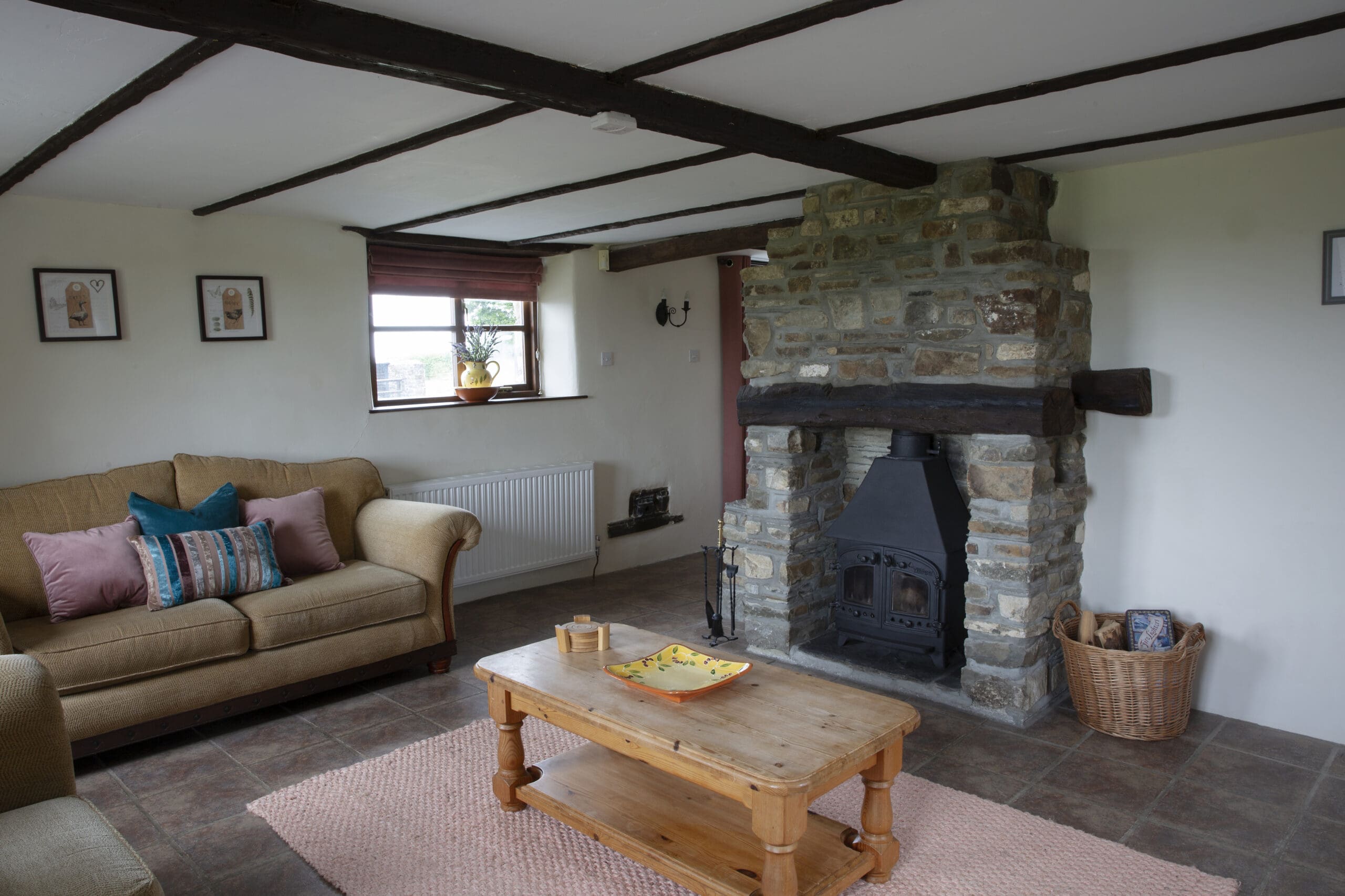 Rose Cottage is a spacious stone barn conversion with four bedrooms, comfortably sleeping 8 plus cots. On the ground floor, you’ll find a generous open-plan living area featuring a fully equipped kitchen, a large dining area with seating for ten, and a cozy lounge centred around a stone fireplace with a wood-burner.