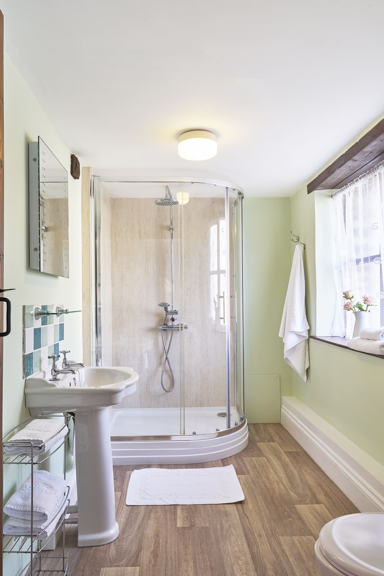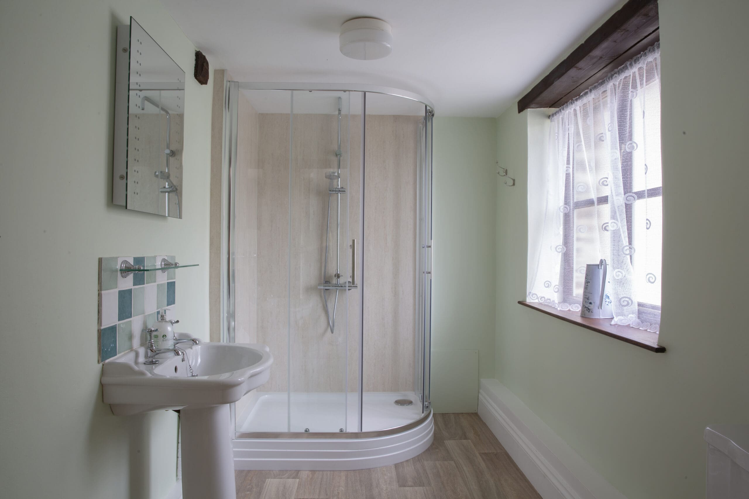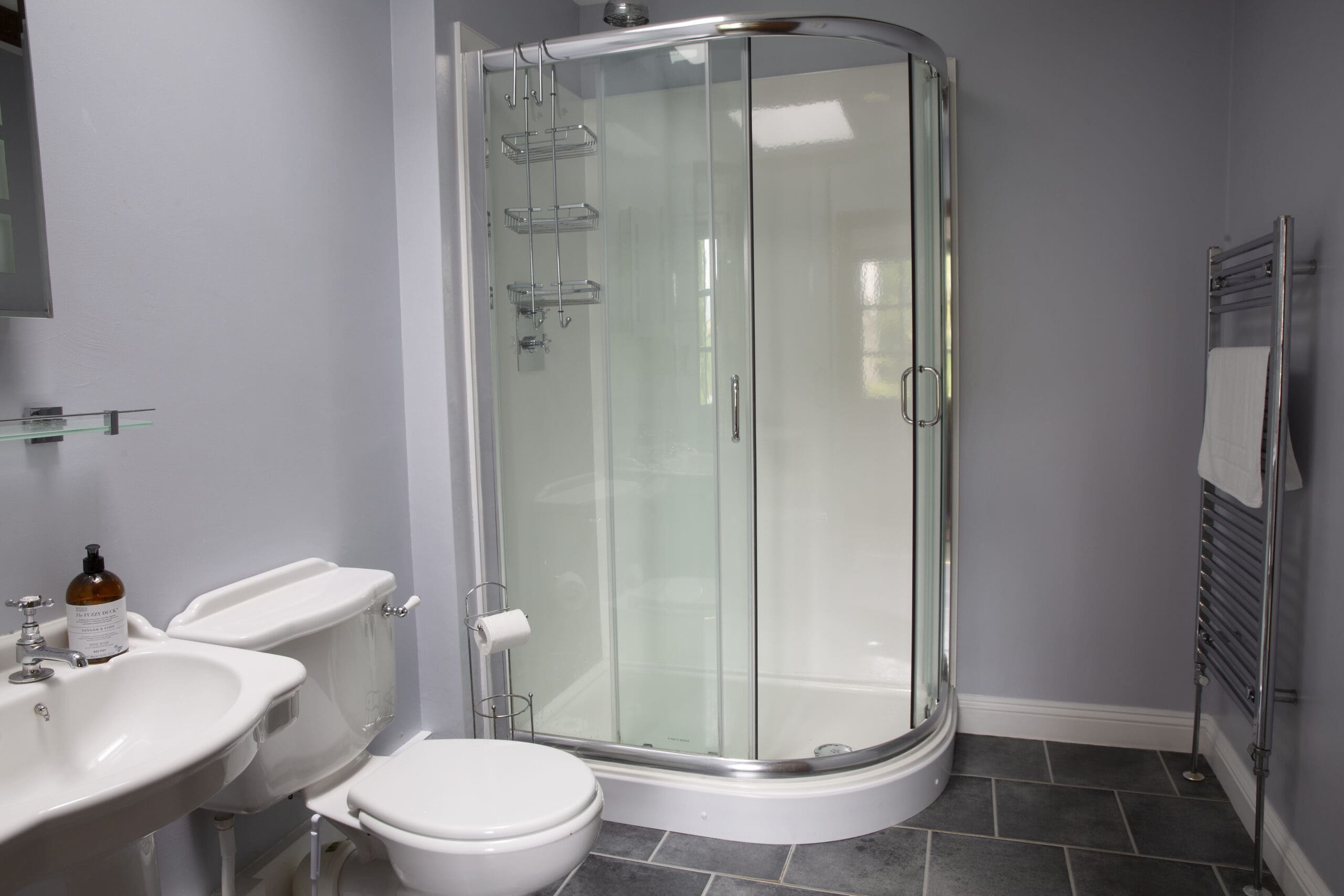 • The shower-room has a heated towel rail, WC and wash-basin.