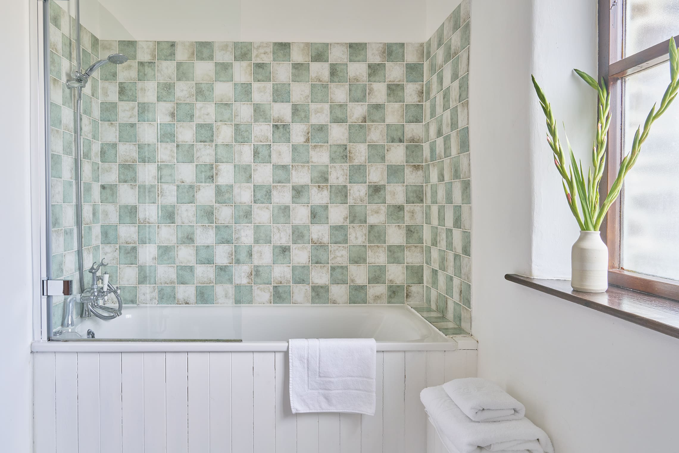 • Family bathroom with shower over bath, WC and wash-basin.