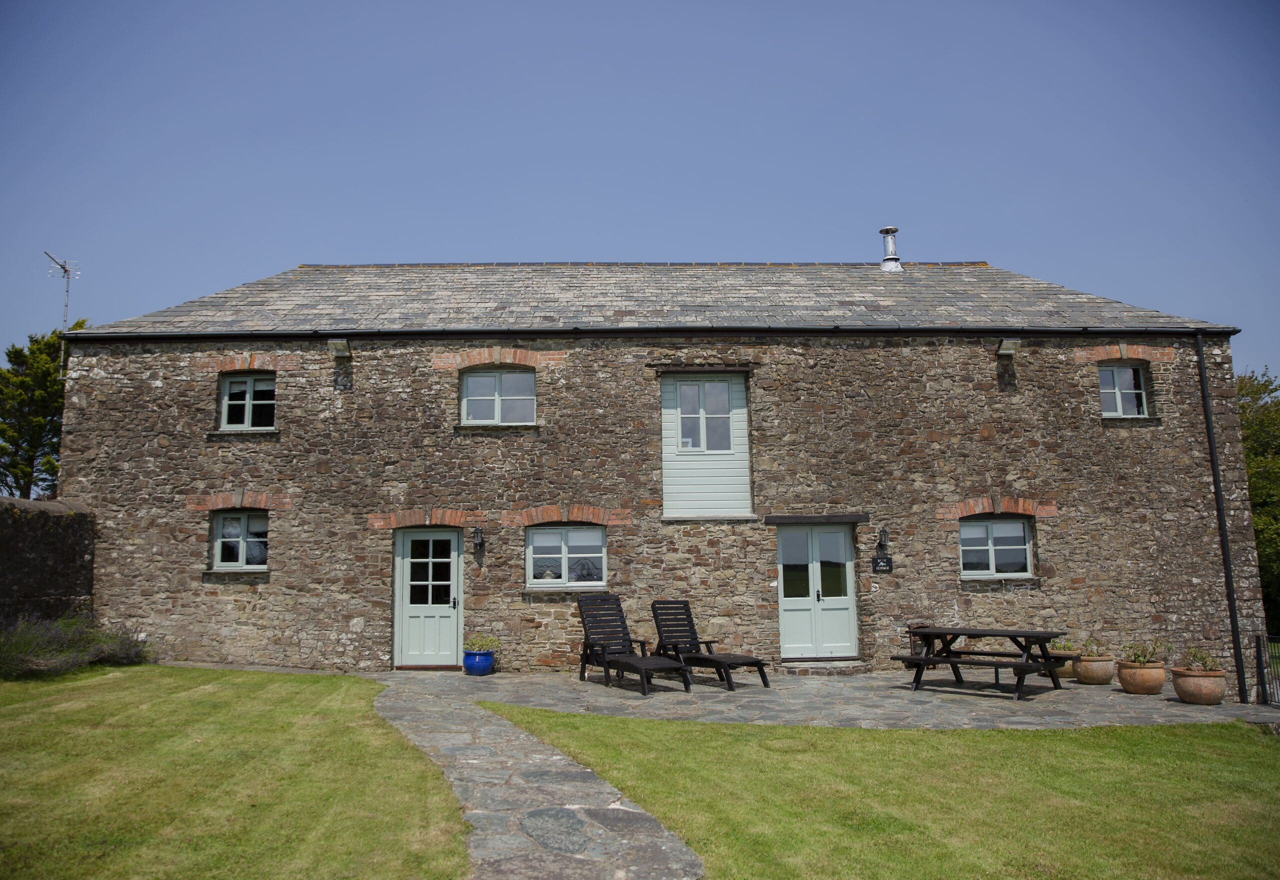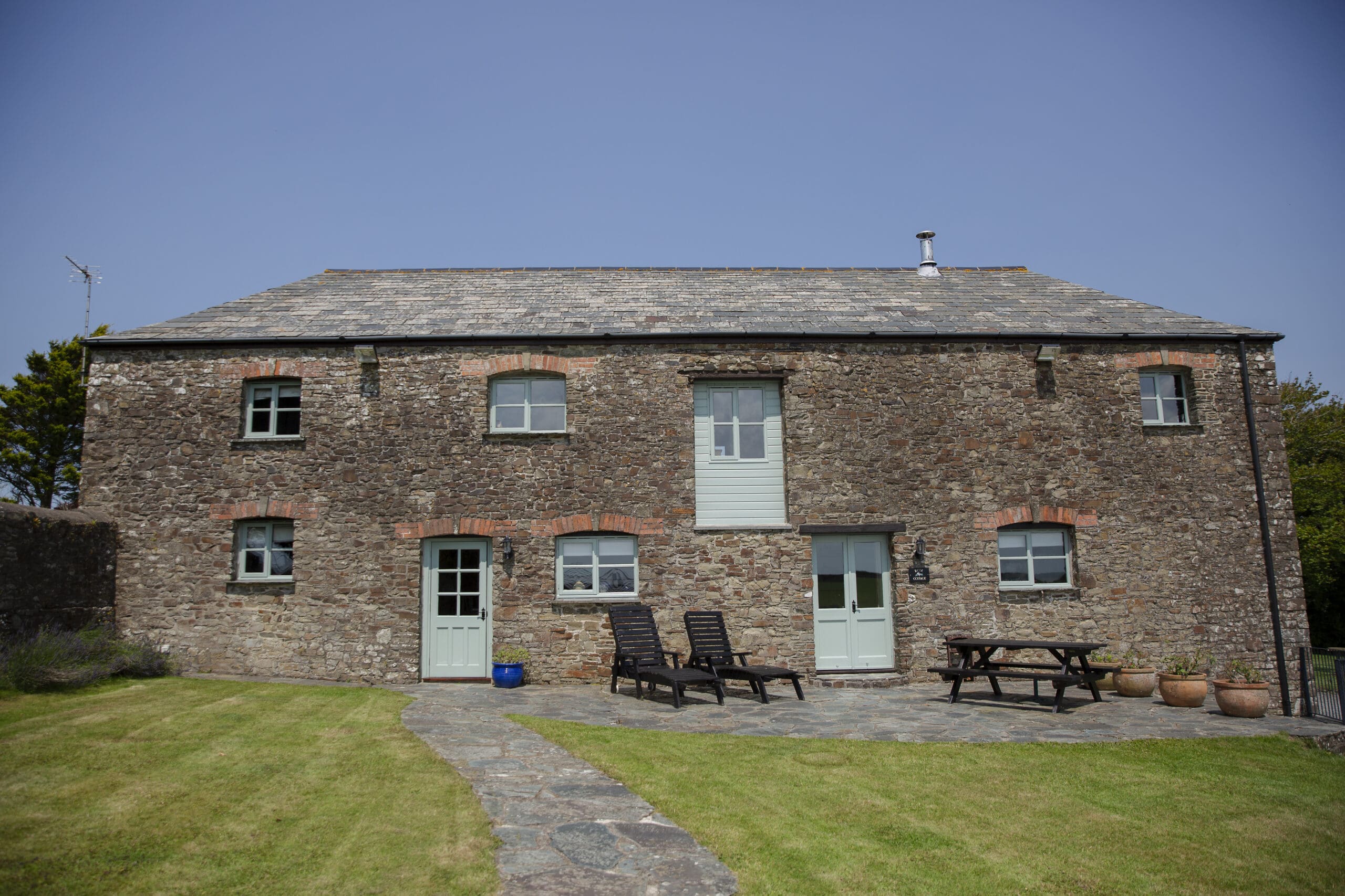 Rose Cottage features a walled orchard at the back and a front garden area with private picnic benches and loungers, perfect for enjoying long summer days.