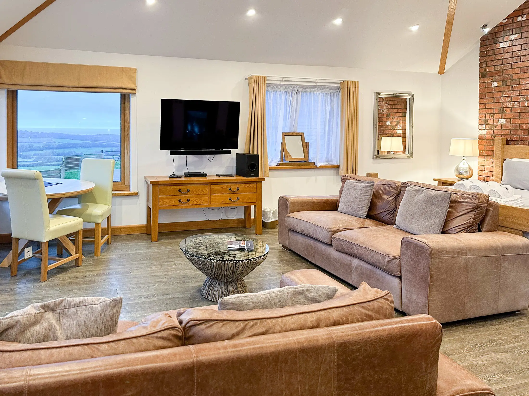 The bi-fold doors lead directly onto a private patio where you can enjoy sweeping countryside and sea views. Parking is conveniently located a short distance from the apartment.