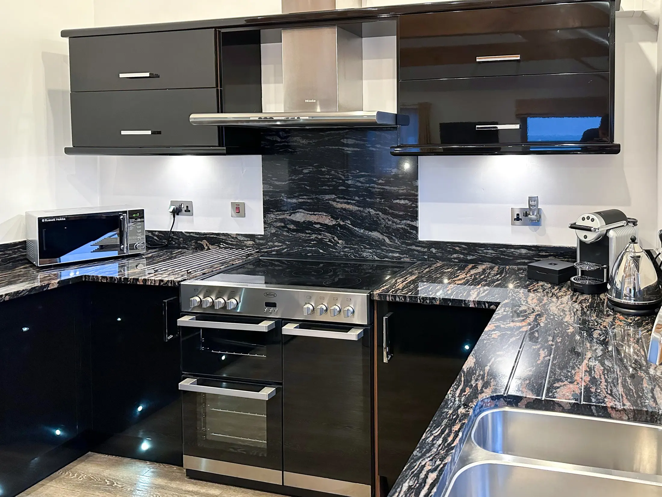 The fully equipped kitchen is finished with quality appliances and everything you need for your stay, including: