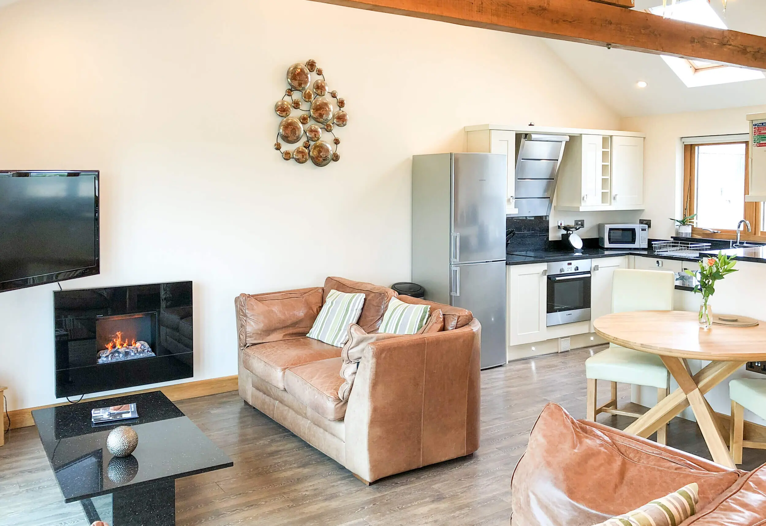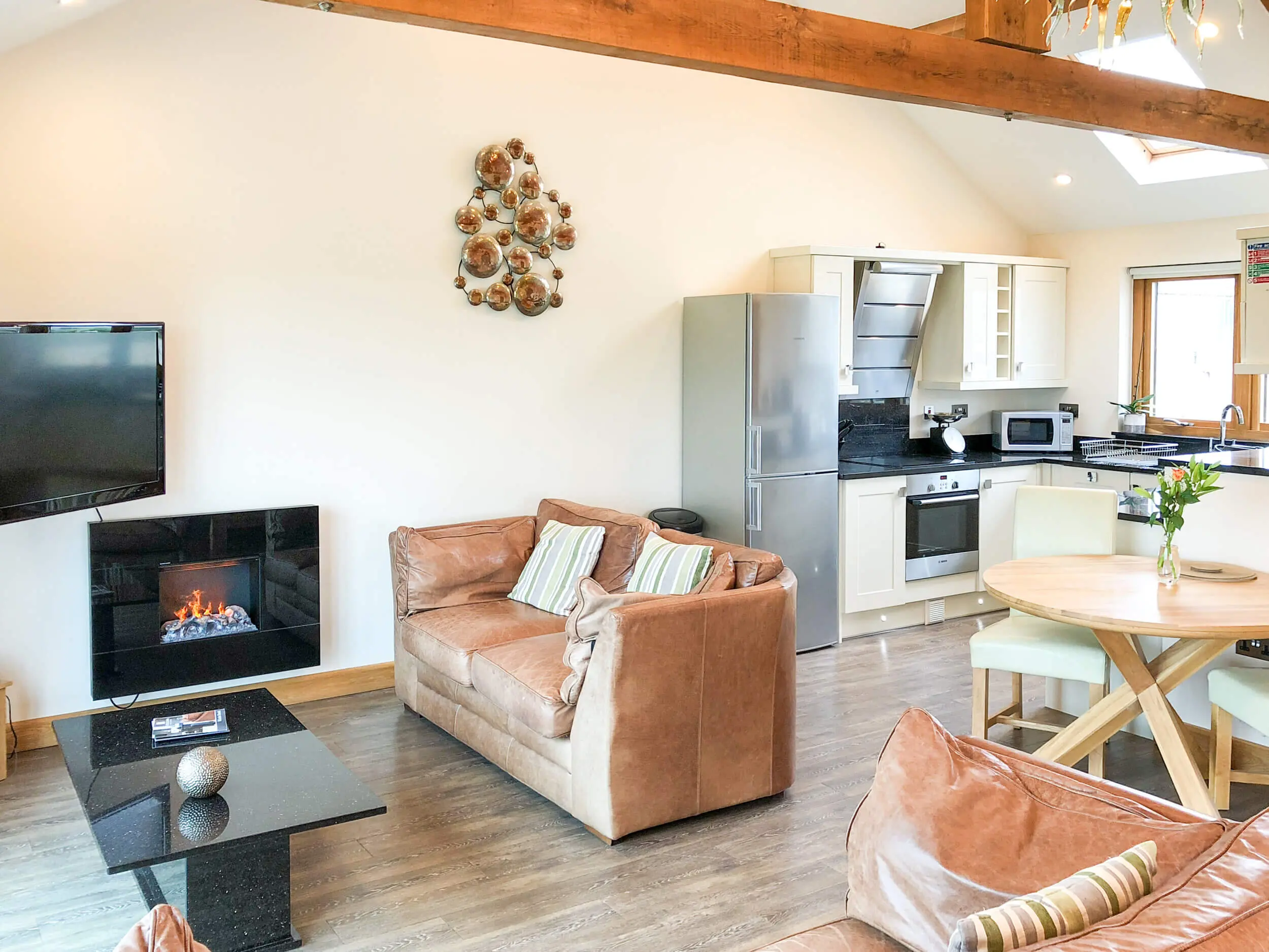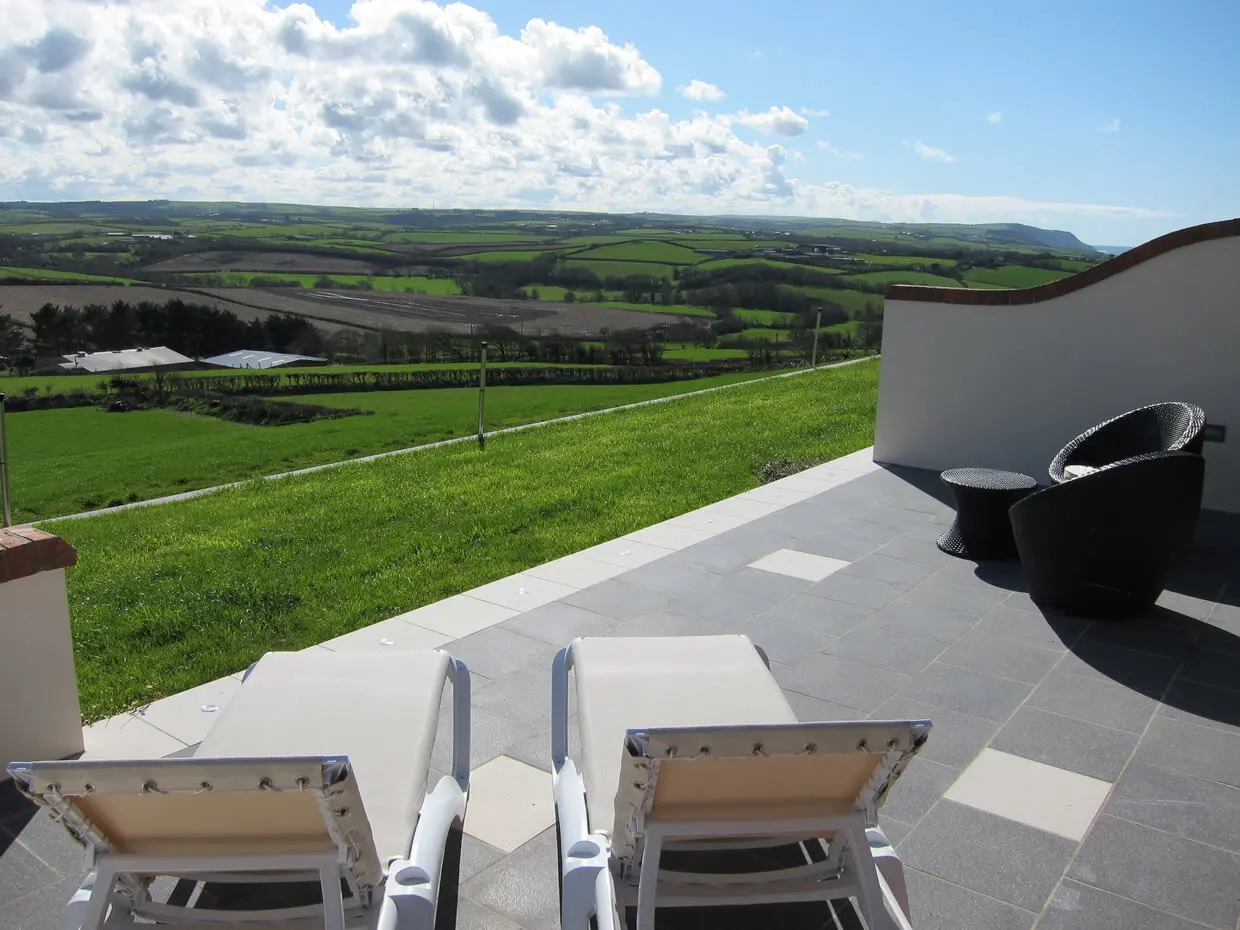 The bi-folding doors lead out to a private patio where you can take in panoramic countryside and sea views. Parking is conveniently located just a short distance from the apartment.