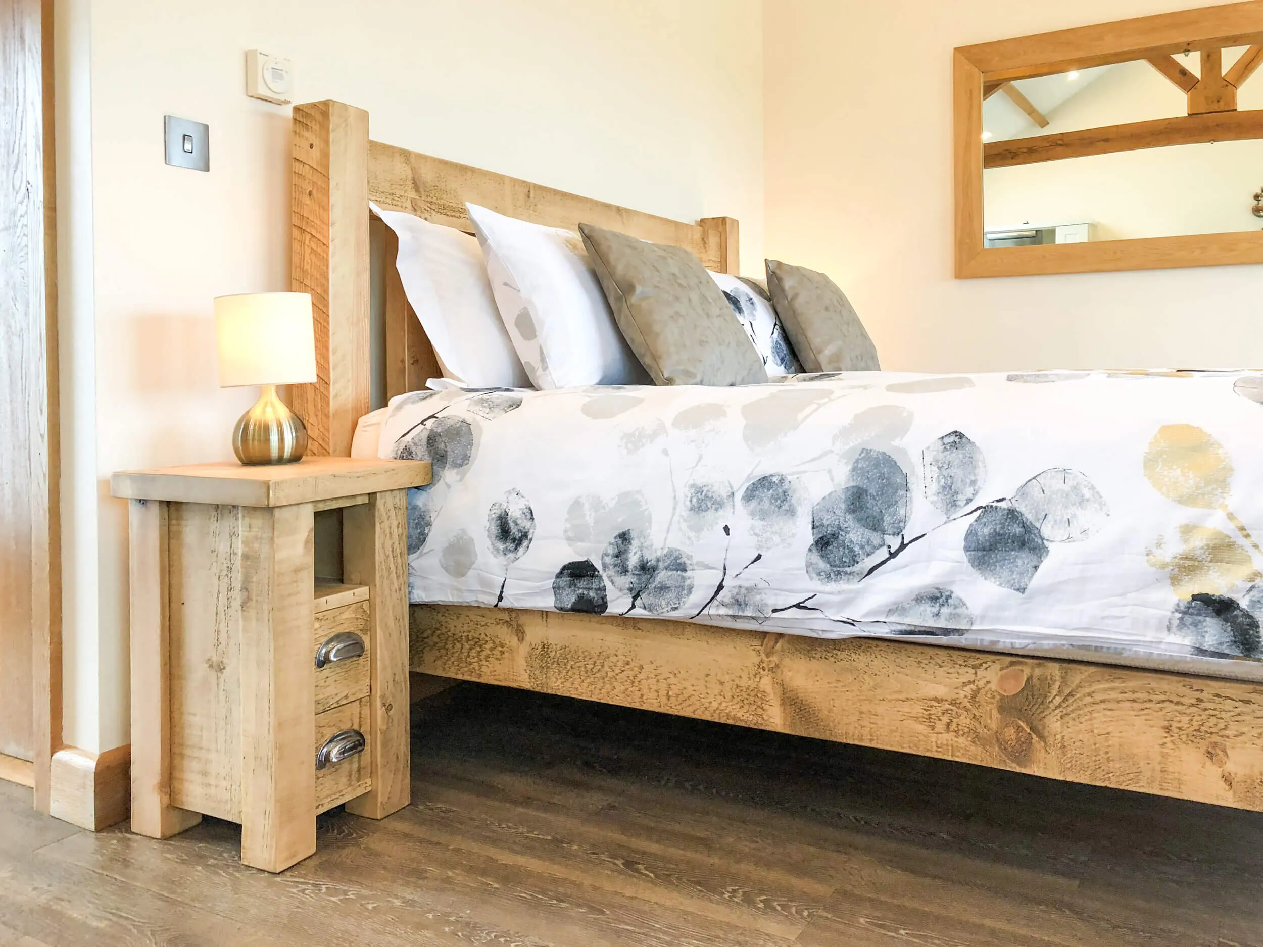 Sleep soundly in a super-king bed, handcrafted from Canadian pine and topped with a memory foam mattress for ultimate comfort.