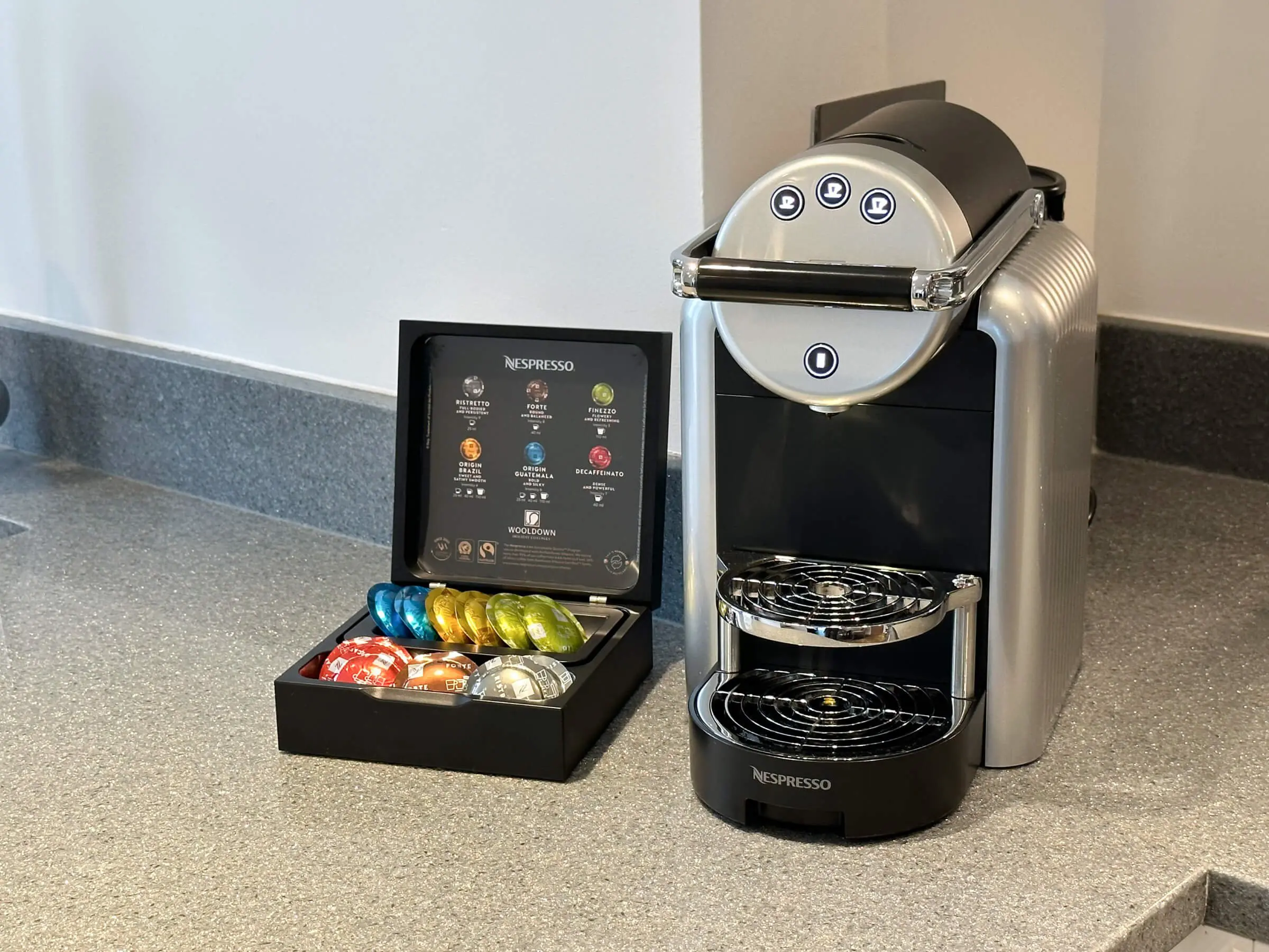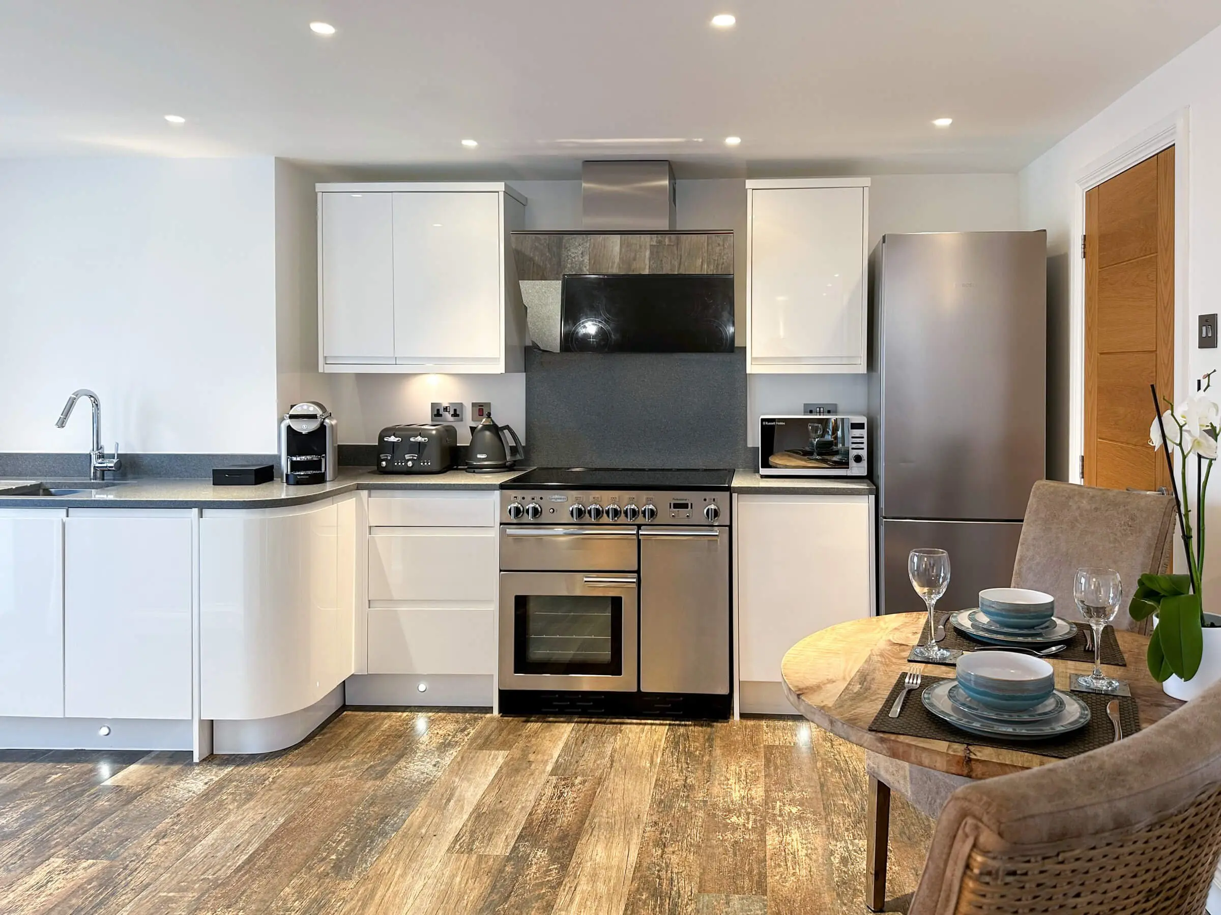 The fully equipped kitchen includes everything you need for a comfortable stay: