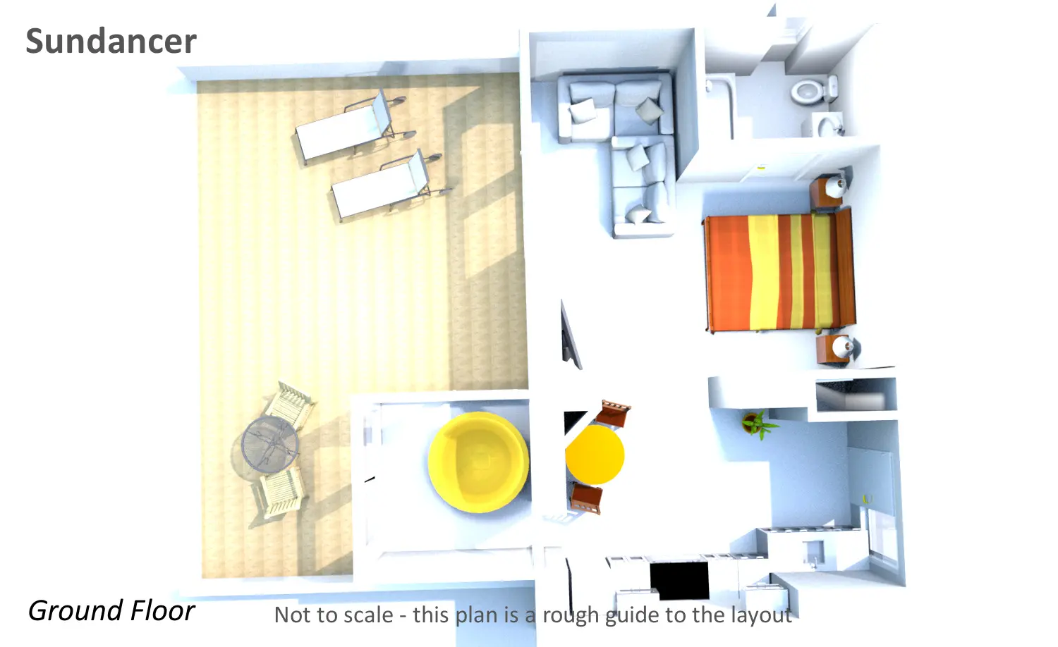 Sundancer is atmospherically lit, creating a romantic and relaxing setting for couples to unwind. The contemporary living space includes high-quality entertainment with: