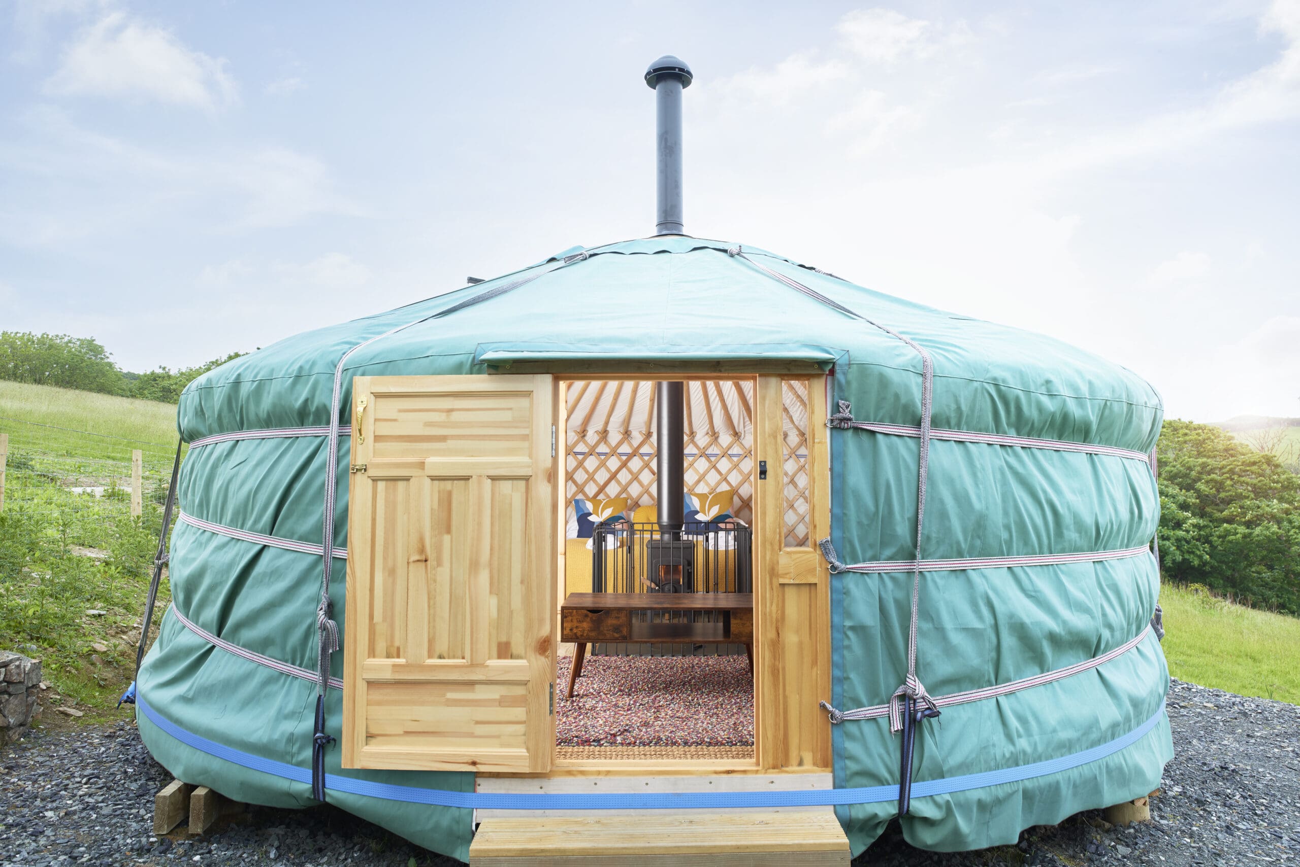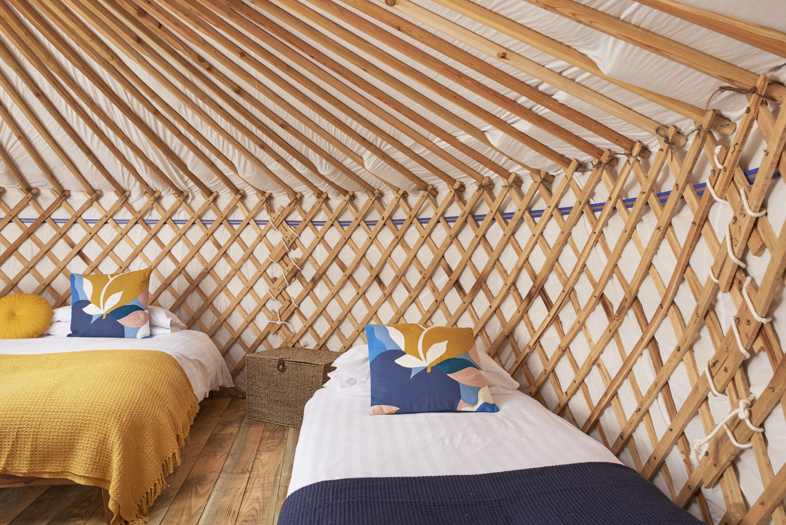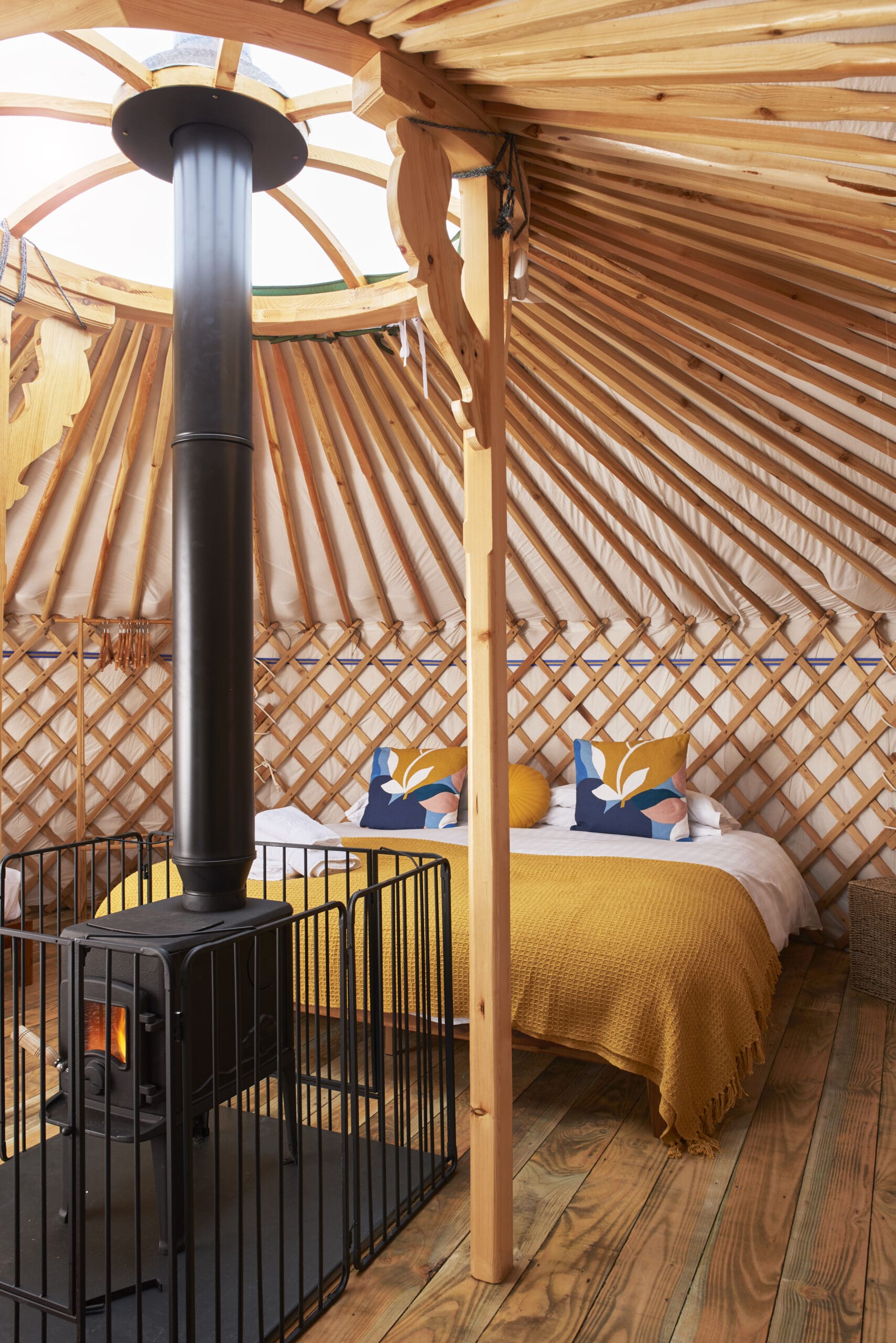 Woodlands Manor Farm offers two luxurious glamping yurt options for guests: Budhyn (Cornish for “meadow”) and Fenton (Cornish for “spring”).