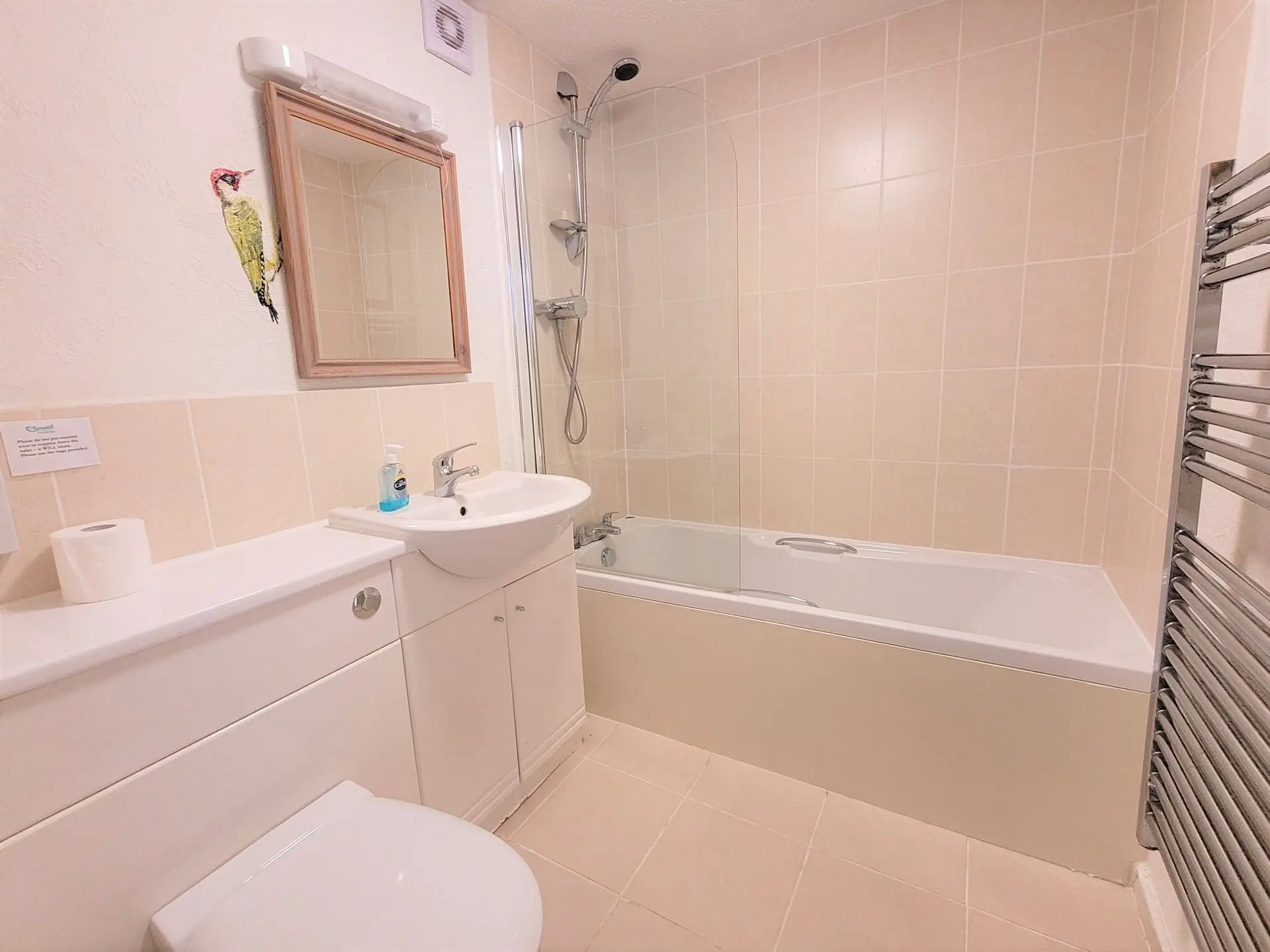 A cheerful children’s room with a fun red London bus bunk bed – always a hit with junior visitors!