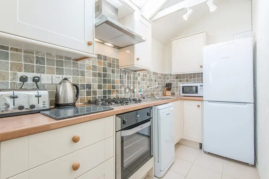 Set all on one level, the cottage features an open-plan lounge and dining area with a well-equipped galley kitchen.