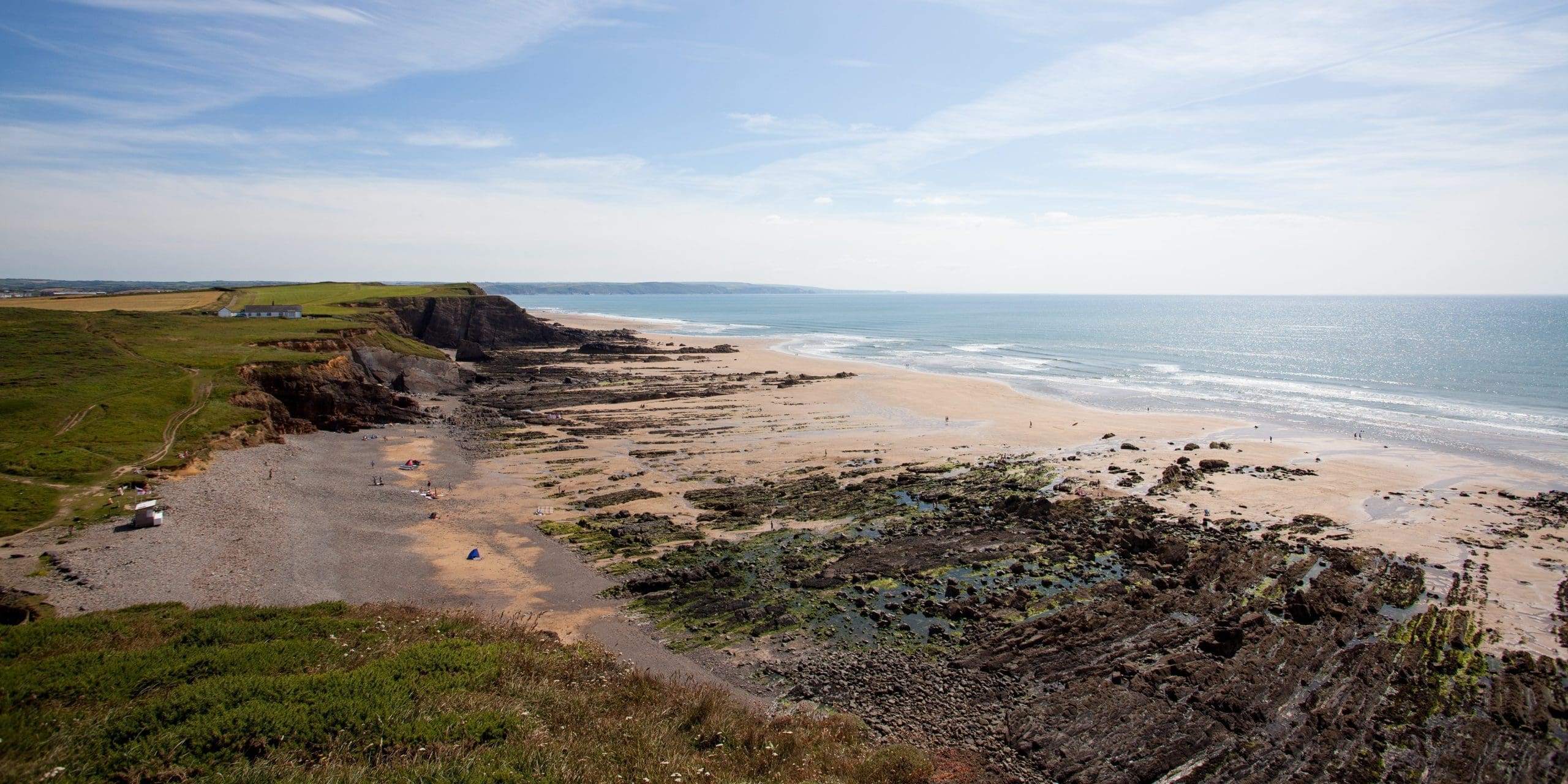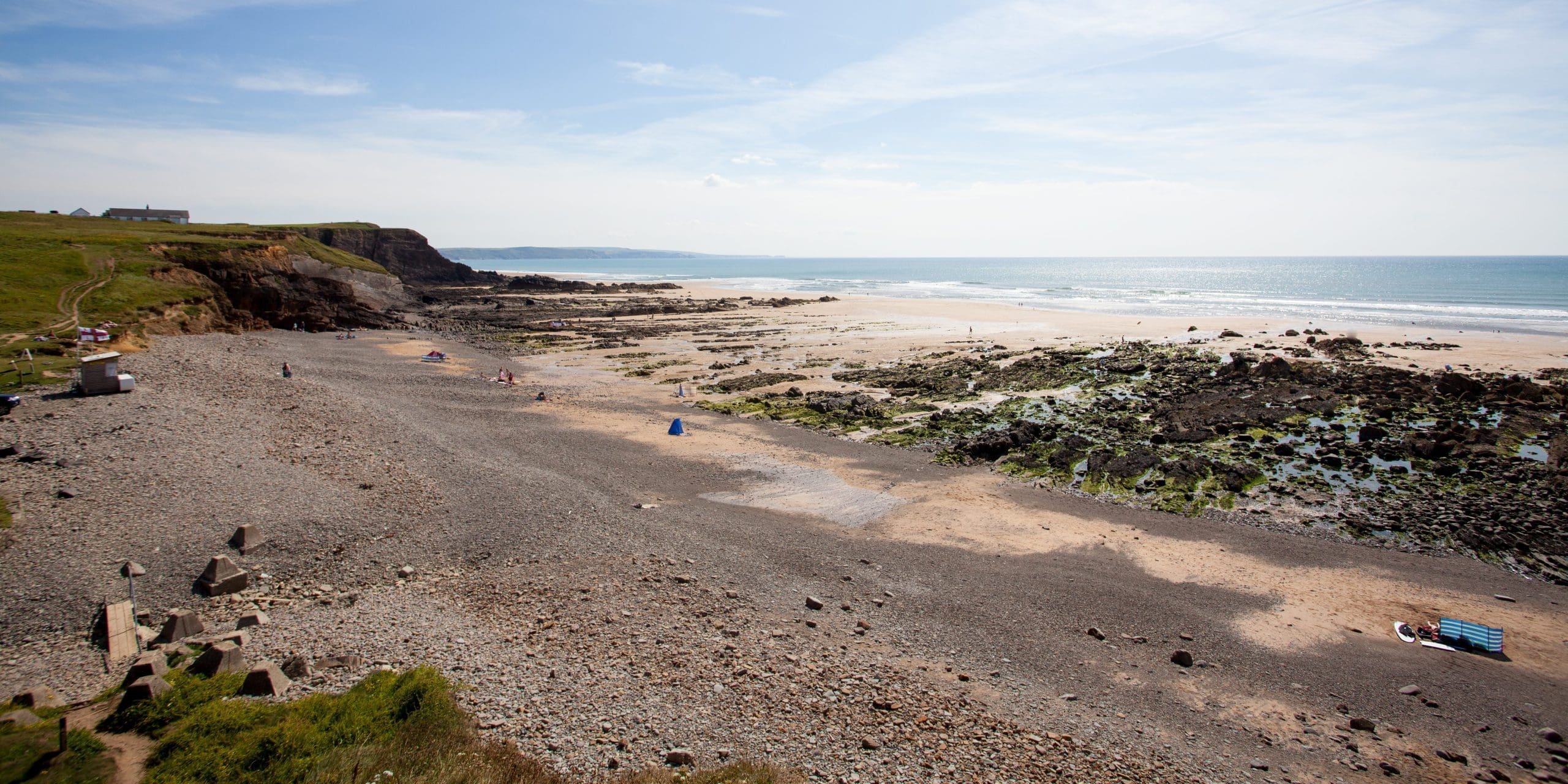 Nestled within the embrace of these towering cliffs, Northcott Mouth exudes an enchanting allure, and children will delight in the expansive marine playground that awaits, with endless opportunities to explore rock pools and create dams along the stream.
