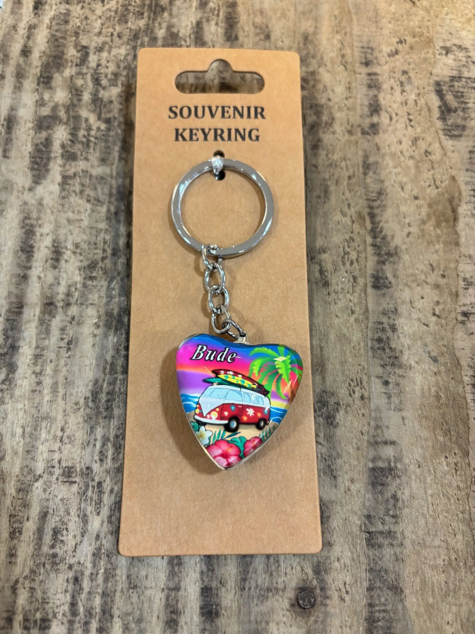 Heart shaped Bude camper van with surfboards design.