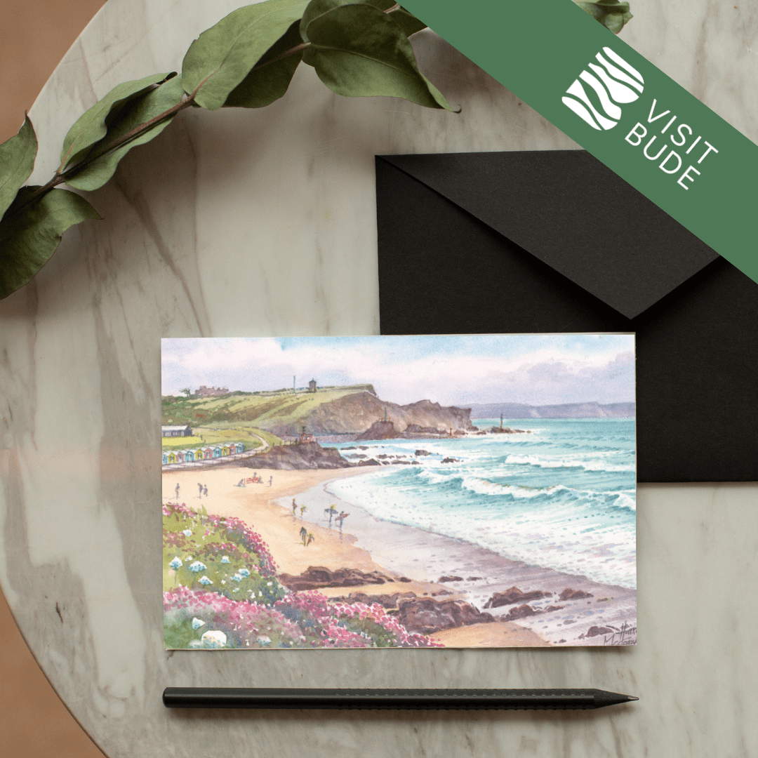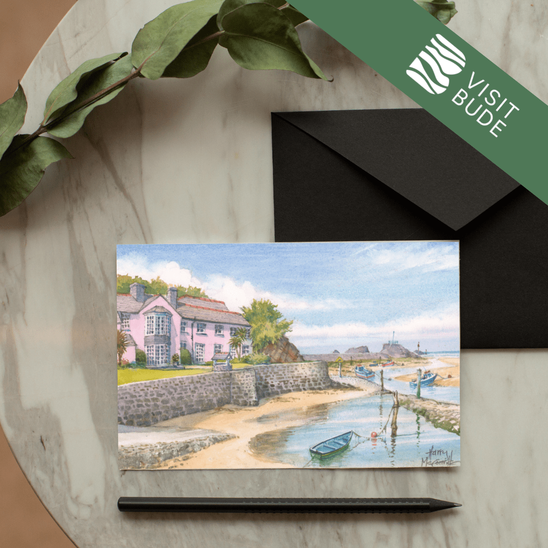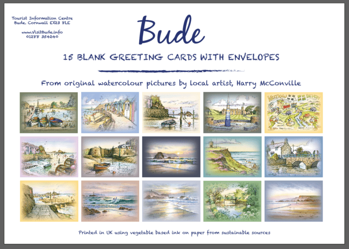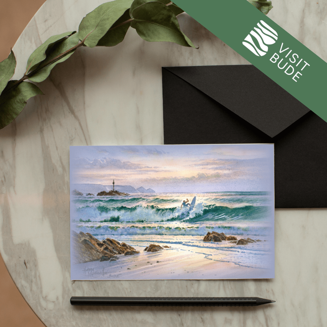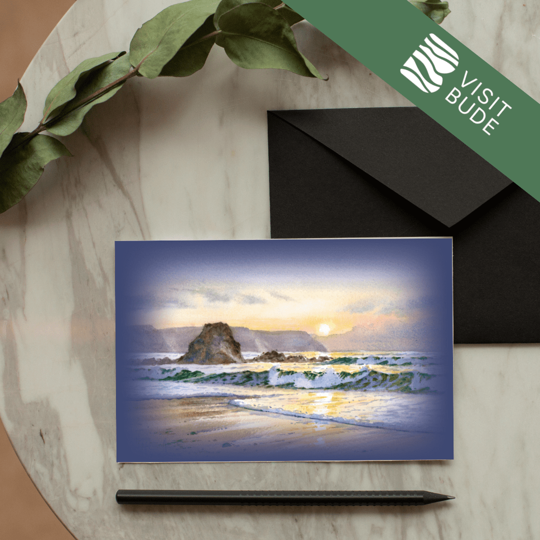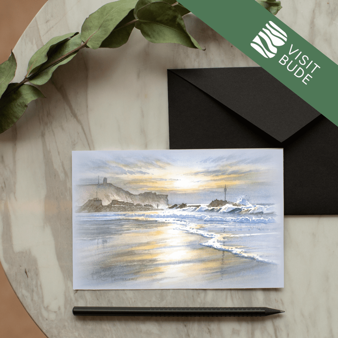 Celebrate the beauty of Bude with this stunning collection of greeting cards, each showcasing one of 21 beloved local scenes. Local artist Harry McConville captures Bude’s dramatic coastline and charming landmarks in exquisite watercolour detail.