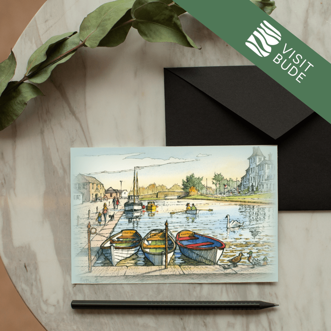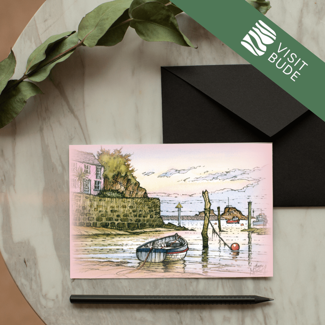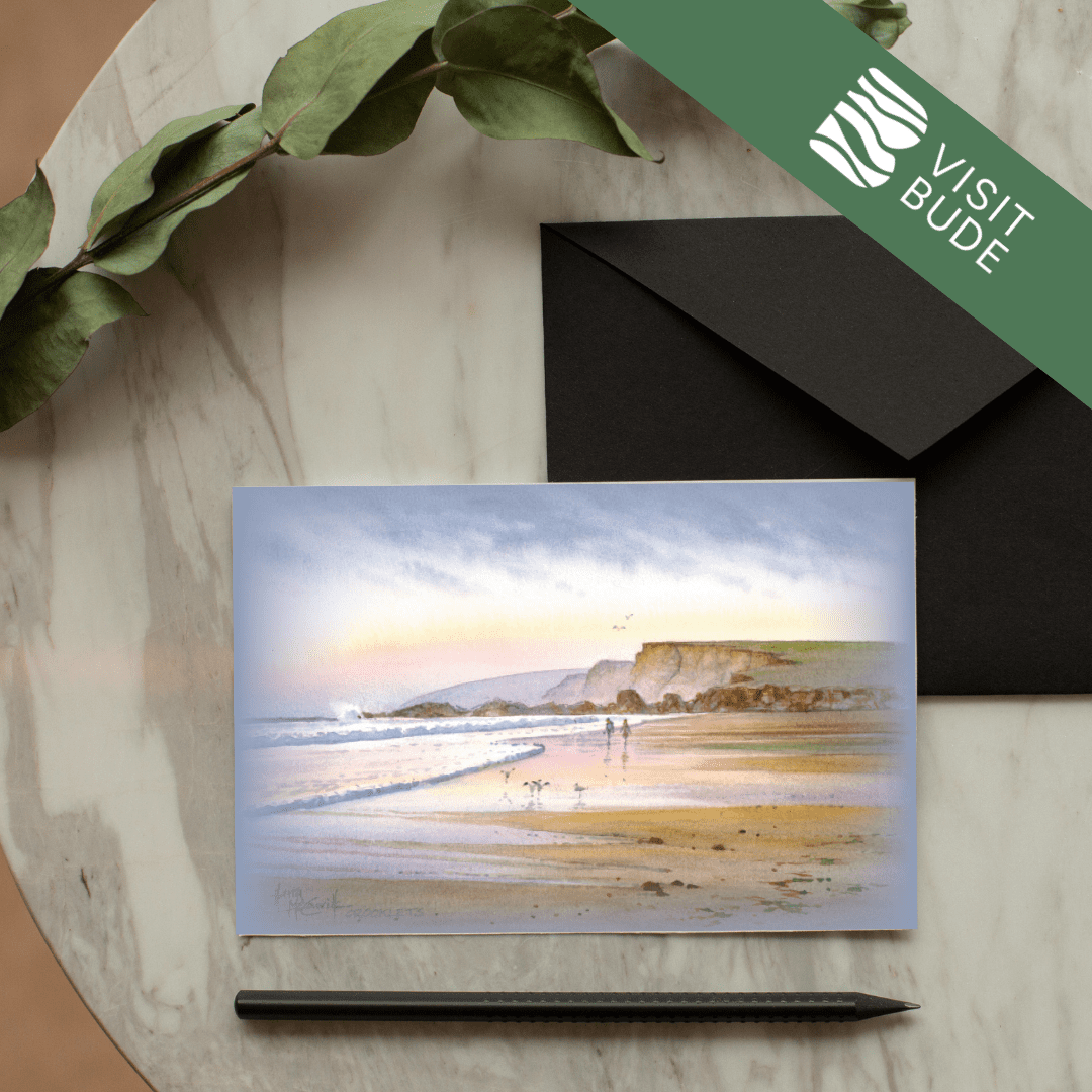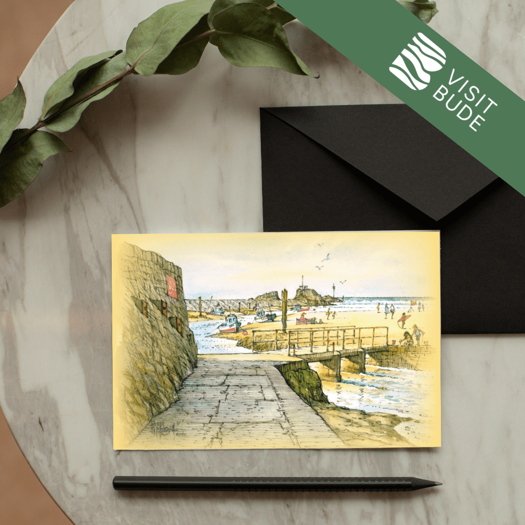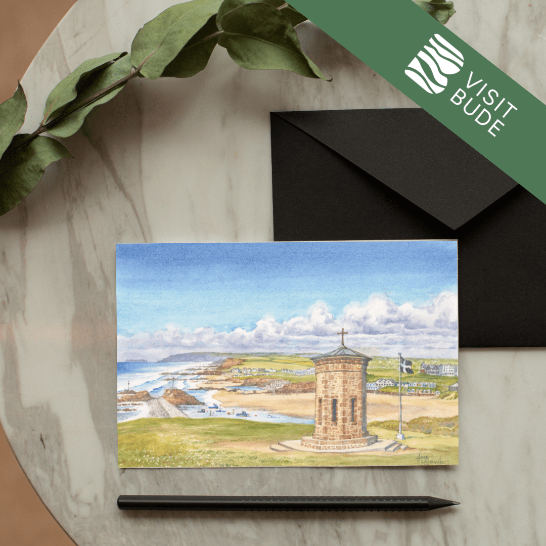 Celebrate the beauty of Bude with this stunning collection of greeting cards, each showcasing one of 21 beloved local scenes. Local artist Harry McConville captures Bude’s dramatic coastline and charming landmarks in exquisite watercolour detail.