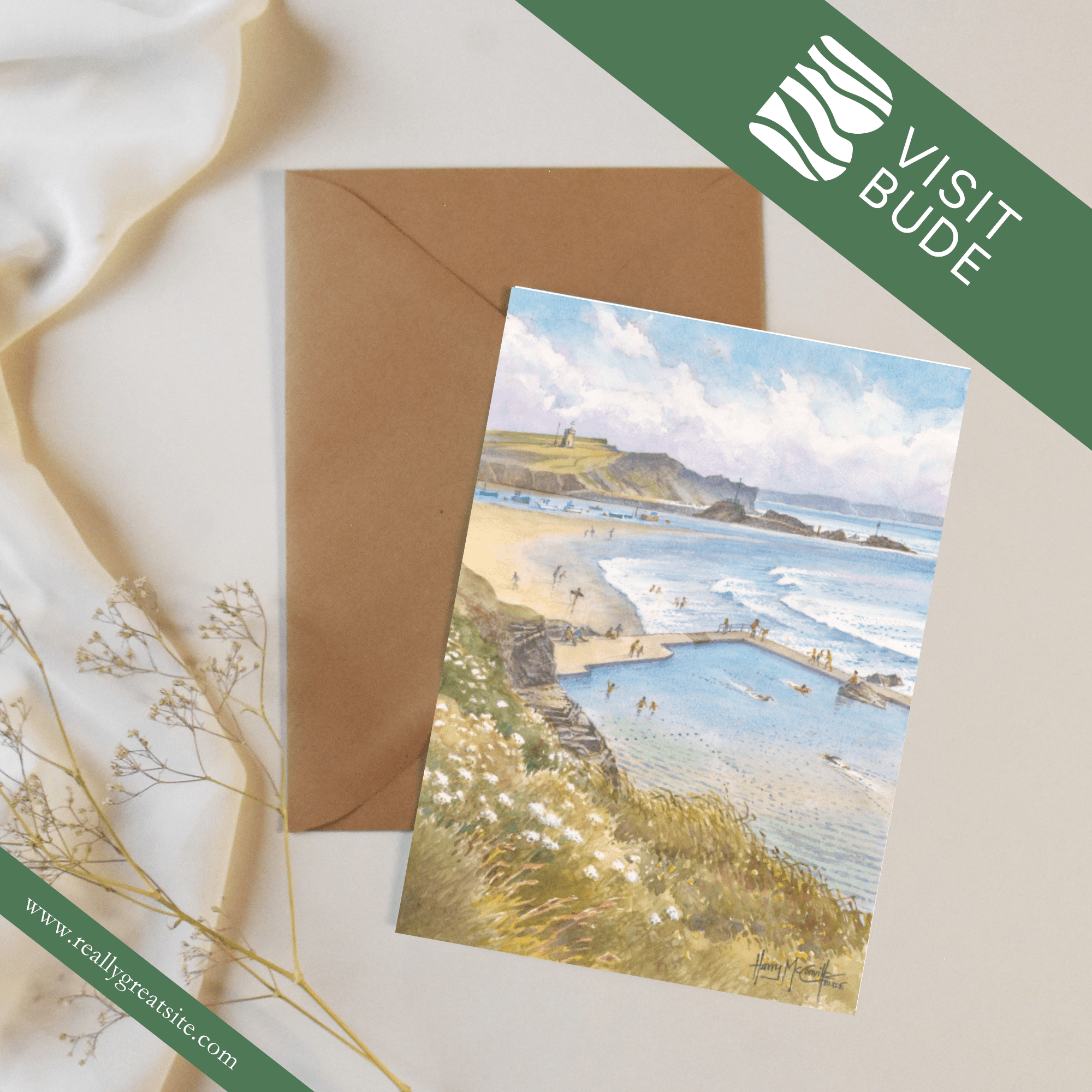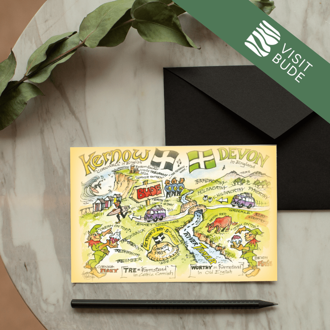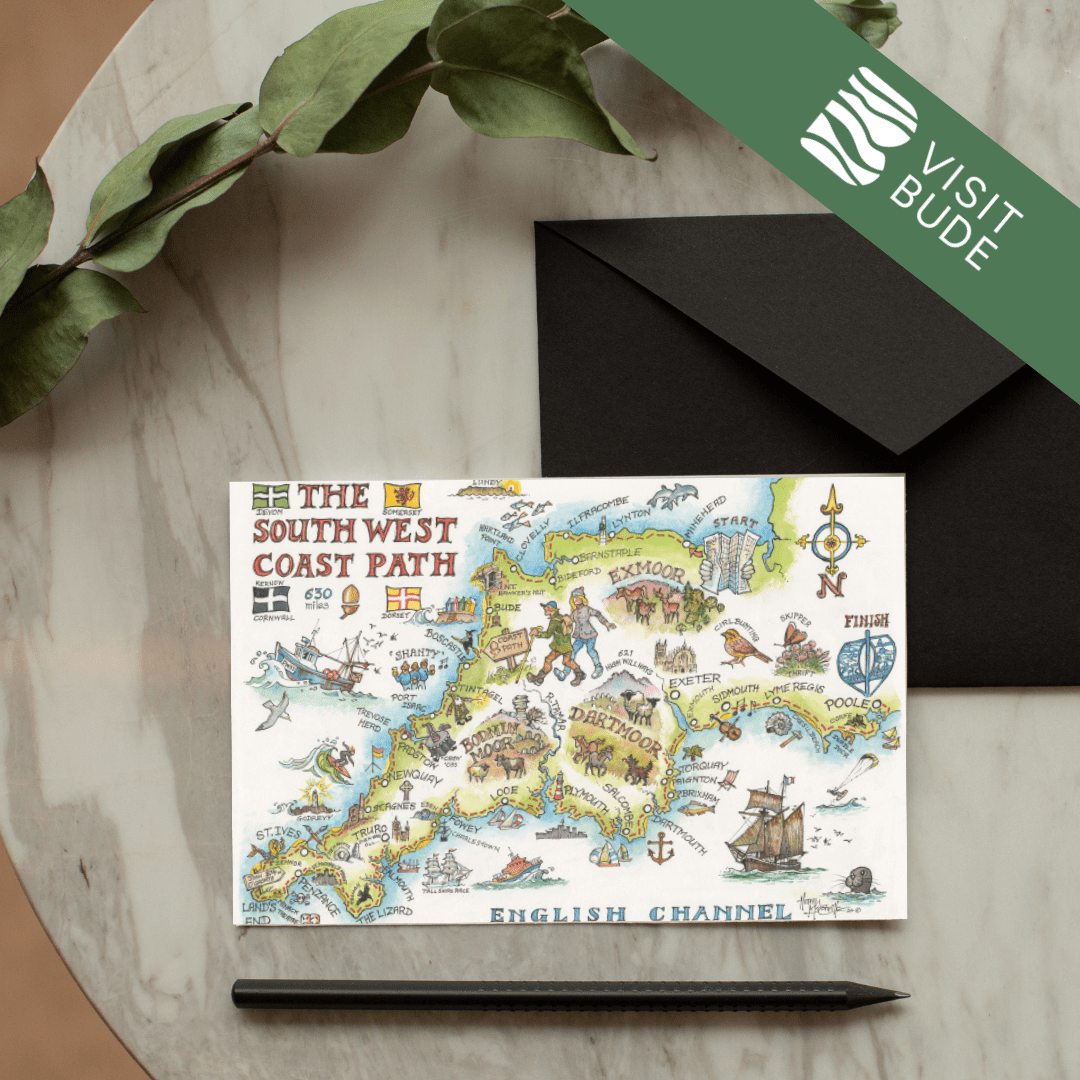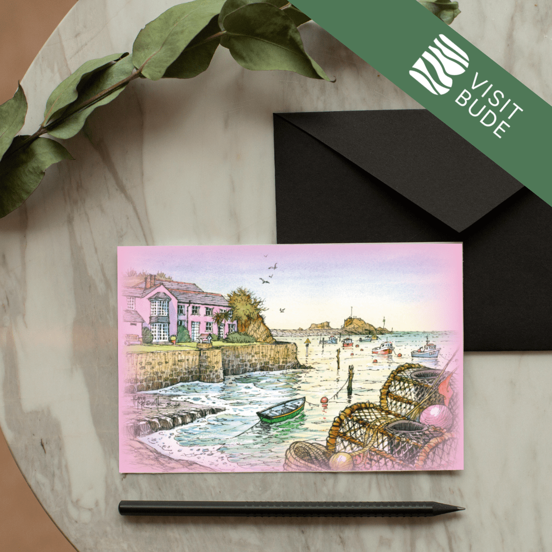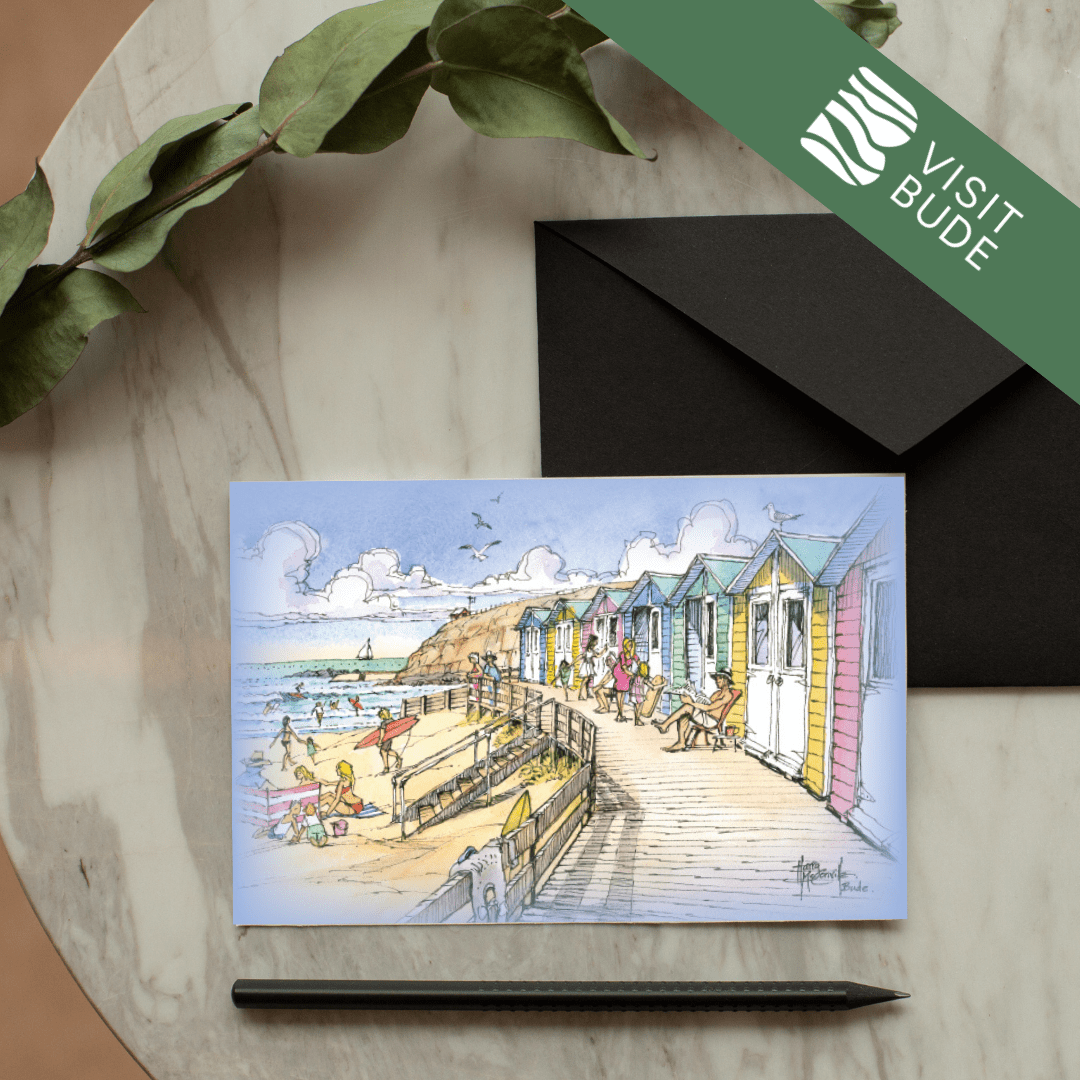 Celebrate the beauty of Bude with this stunning collection of greeting cards, each showcasing one of 21 beloved local scenes. Local artist Harry McConville captures Bude’s dramatic coastline and charming landmarks in exquisite watercolour detail.