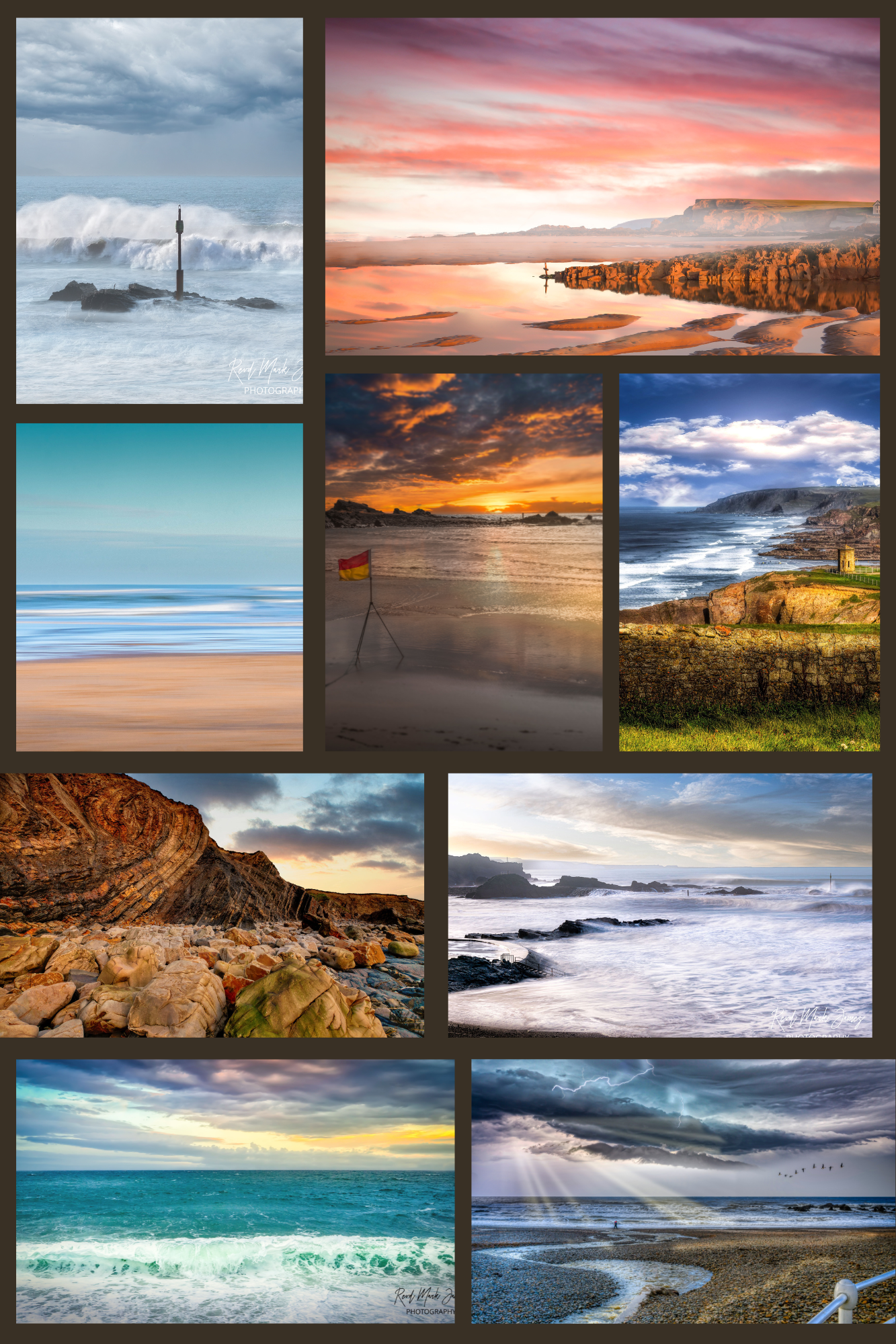 | Photography Print | 1 Barrel Rock, 2 Sunray, 3 Rock & Moon, 4 Seapool, 5 Seapool Waves, 6 Rock Strata, 7 Waves, 8 Storm Flags, 9 Blue Seas, 10 Sunset Rocks, 11 Pepperpot, 12 Sunset Flags, 13 Abstract Seas, 14 Half Tide Cross |