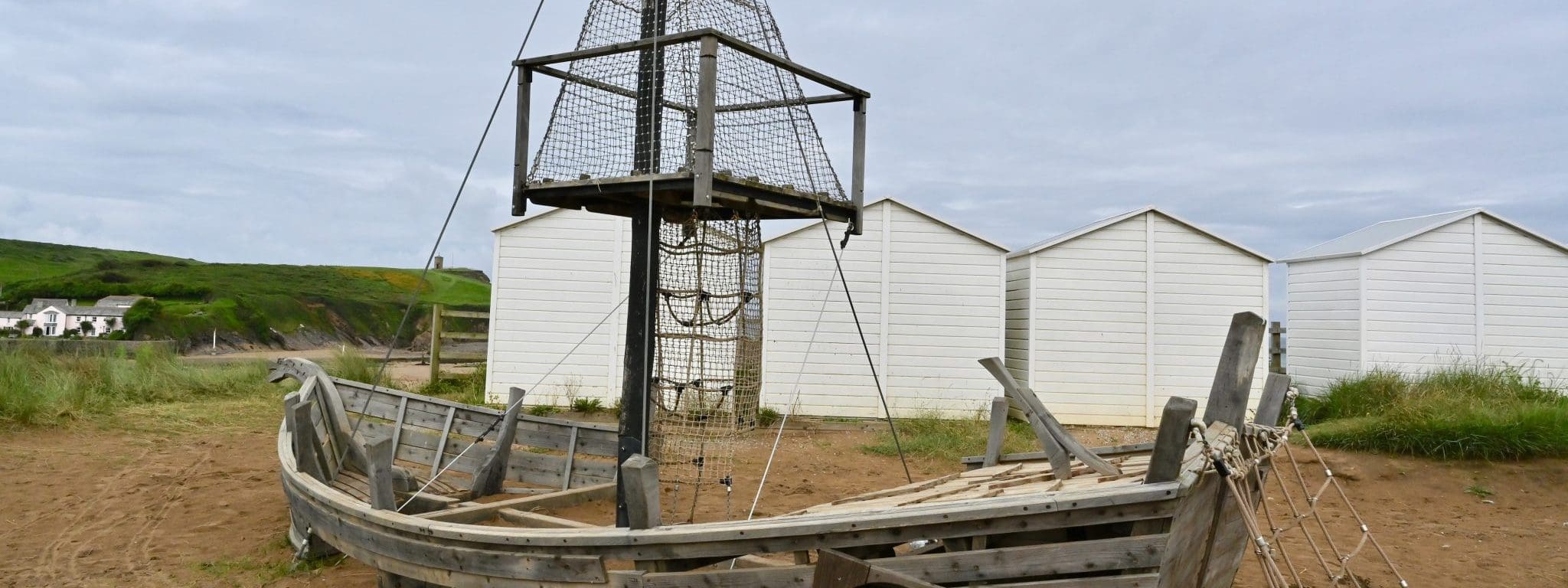 Recently reconstructed, the wooden Pirate Ship moored behind the beach huts at Summerleaze Beach presents an imaginative playground for children of all ages.