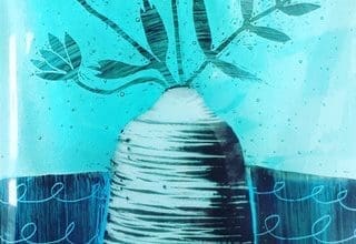 The vast sea and expansive skies of the North Devon/Cornish coastline serve as constant inspiration for both her glass and ceramic creations.